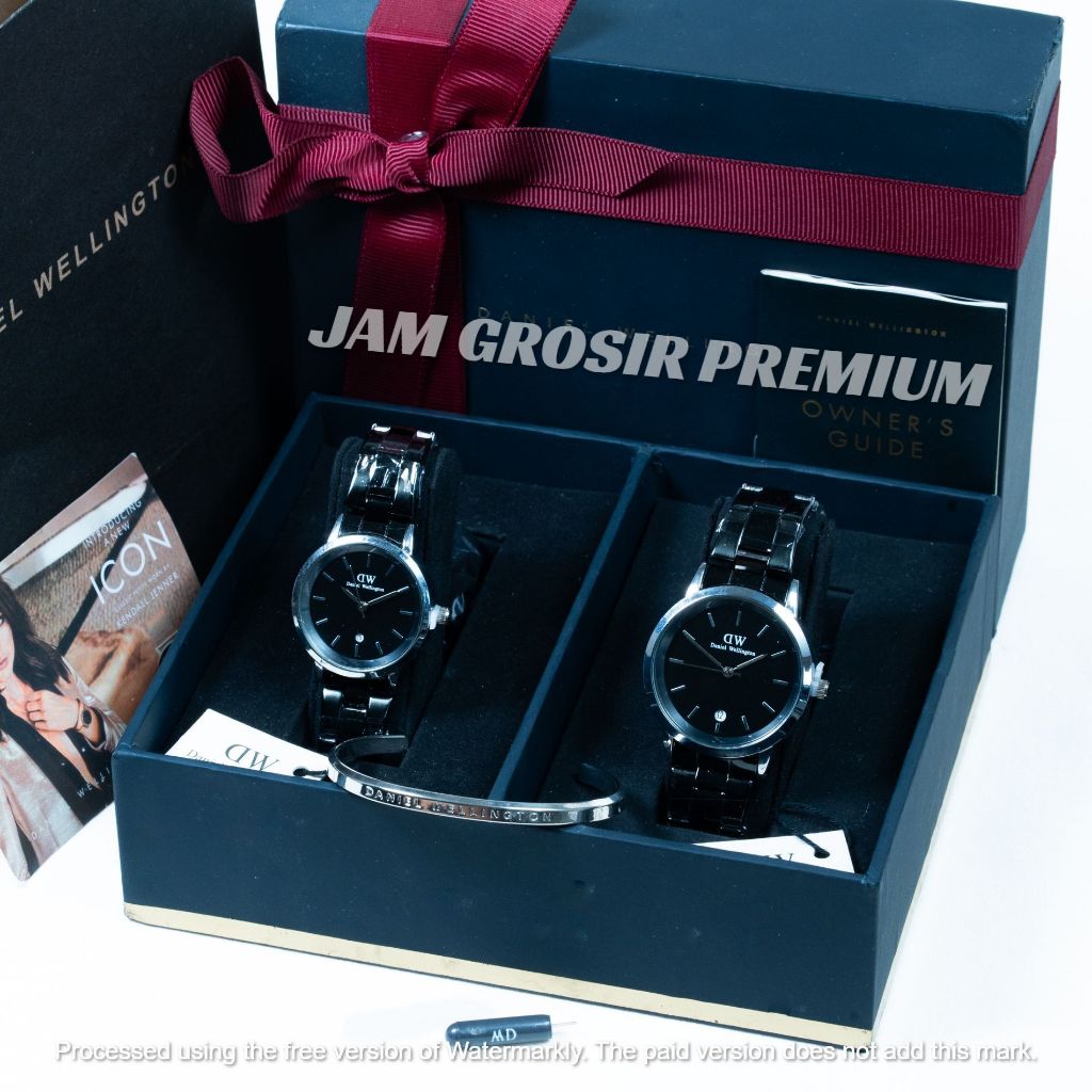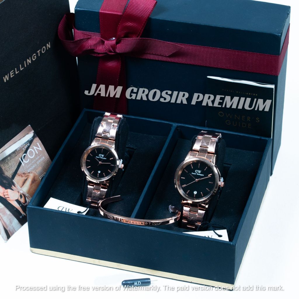 Paket Fullset Box Pita Original Jam Tangan Couple ( Pria / Wanita ) W3203D Rantai Iconic Tanggal Garansi 2 Tahun