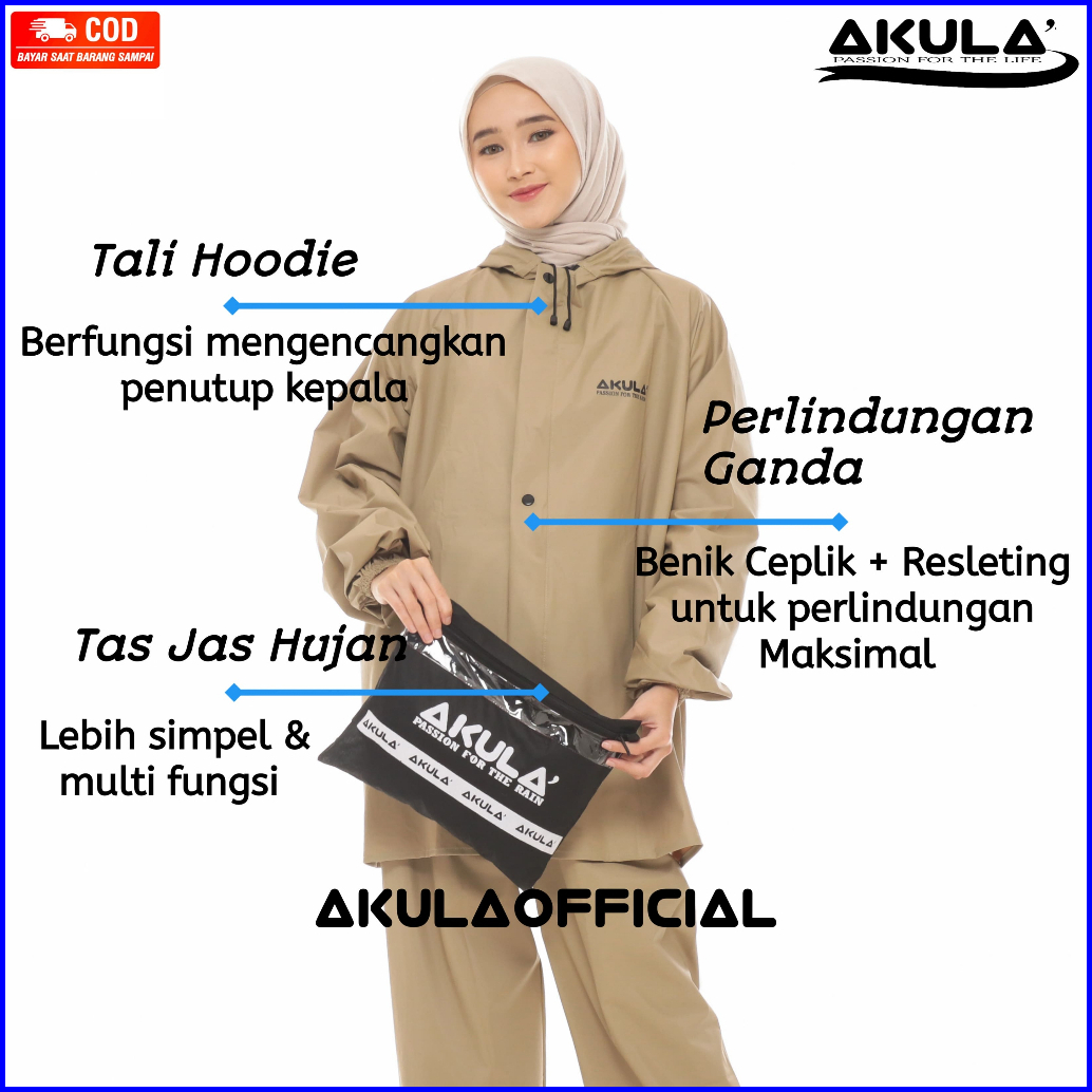 Akula Jas Hujan Setelan Pria Wanita Tebal Kuat Elastis Anti Rembes