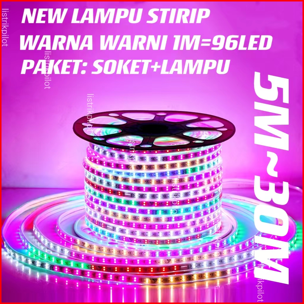 New Lampu 96led Strip Selang Warna Warni 3528 2835 220v Adaptor 5m 30meter Outdoor Rgb Lampu Hias