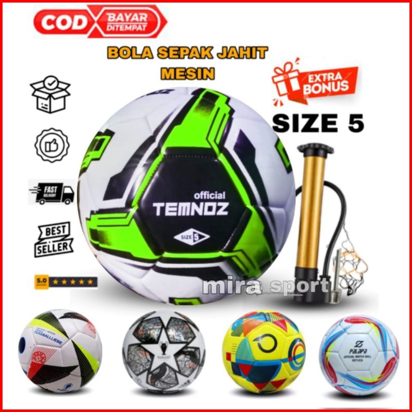 Promo Bola Sepak Bola Kaki Size 5 Dewasa Murah Empuk Lapang Besar Jahit Mesin Gratis Jaring Pentil