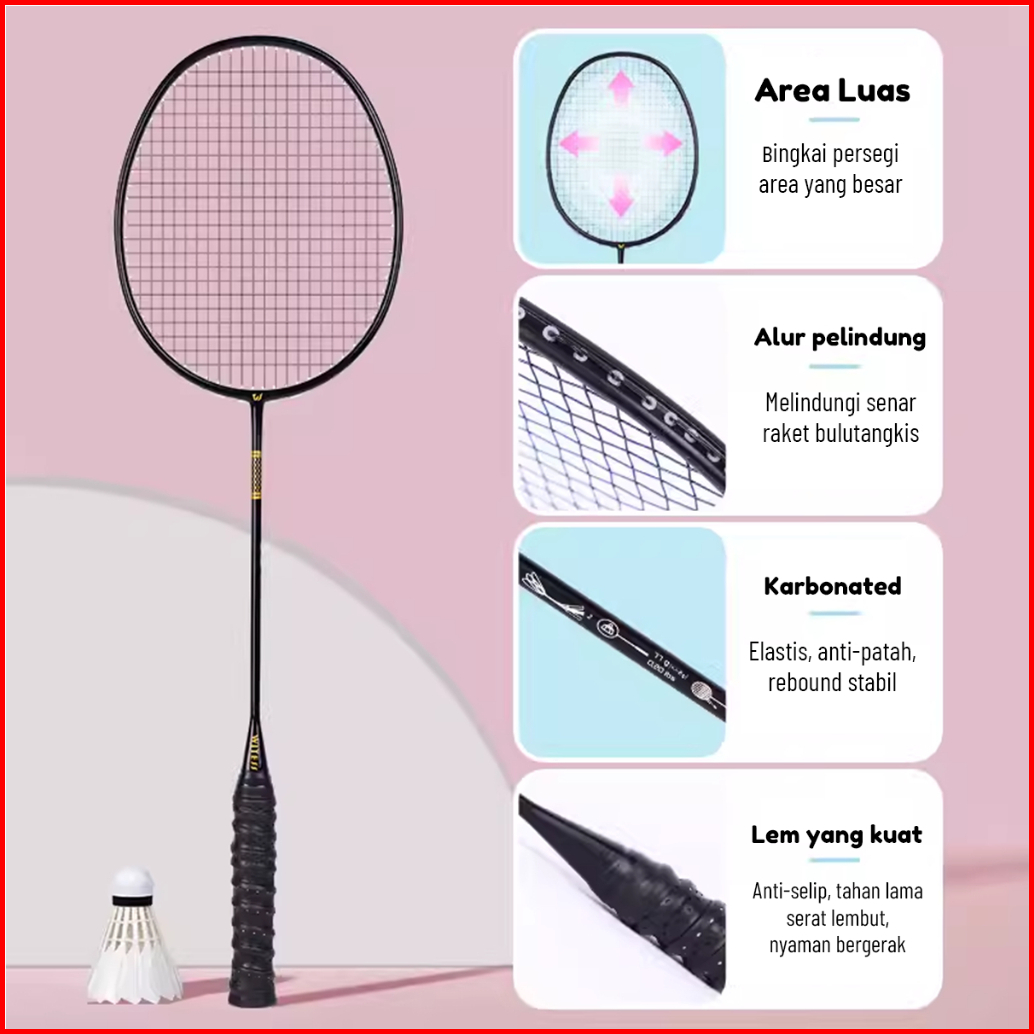 Raket Carbon Badminton Racket Gr 520 Silver Termasuk Senar Plus Cover