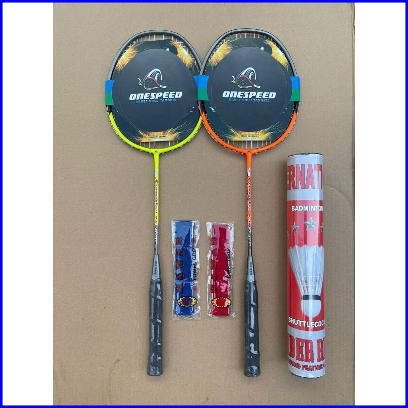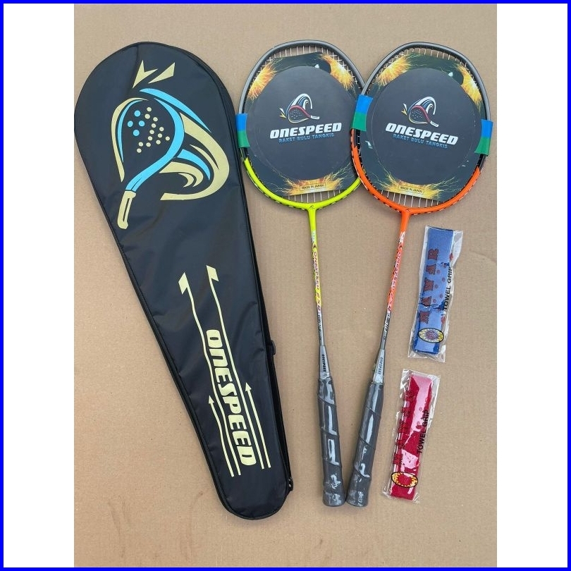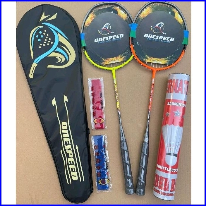 Raket Bulutangkis Original Onespeed Paket Lengkap Raket Tas Grip Shuttlecock