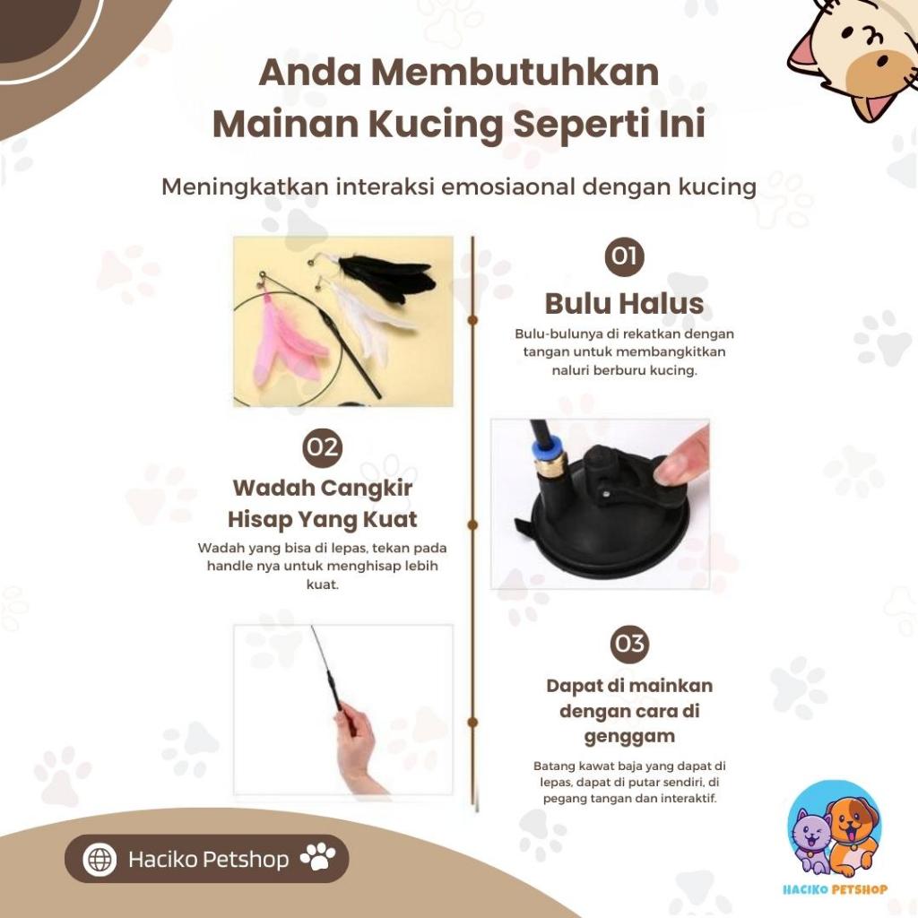 ( PROMO )[HACIKO PETSHOP] Mainan Bulu Tongkat Lentur Bisa Di Lepas Pasang Untuk Kucing Anjing Dengan Suction Cup