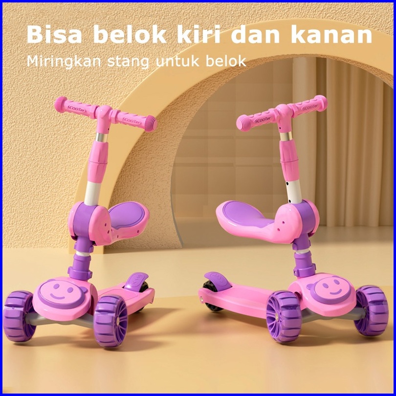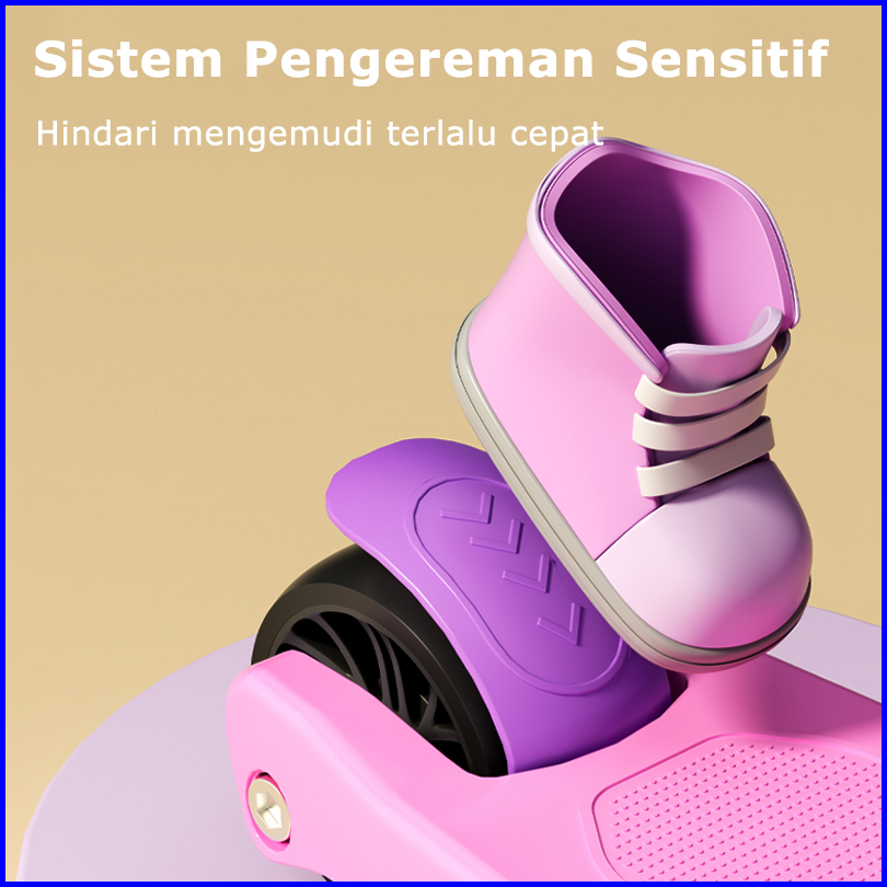 Skuter Anak Roda 3 Mainan Scooter Otoped Bisa Lipat Dengan Lampu Musik