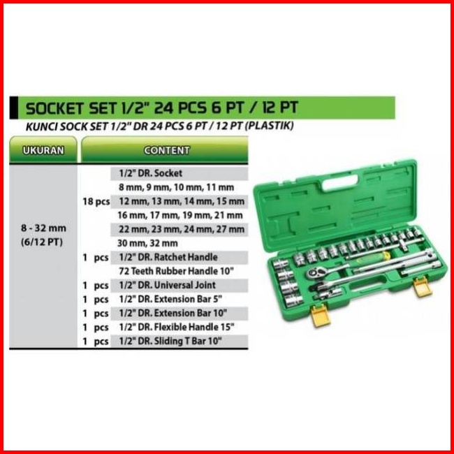 Kunci Sock Set 24 Pcs Pvc Tekiro Hand Mata Sok Shock Socket 24pcs Box Plastik 6 12 Pt 6pt 12pt 10 21