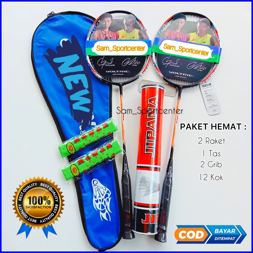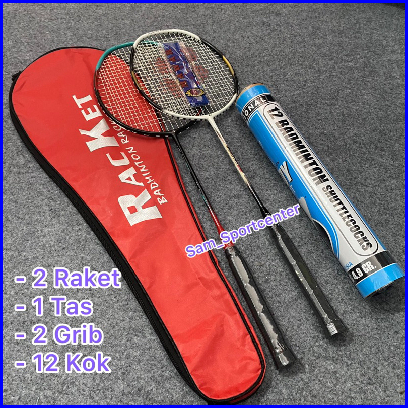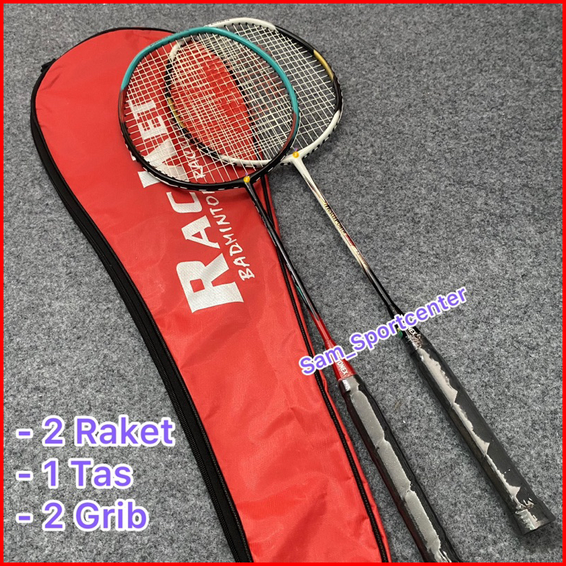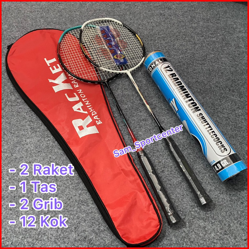 Raket Badminton Satu Set Paket Komplit Raket Tas Kok Grib