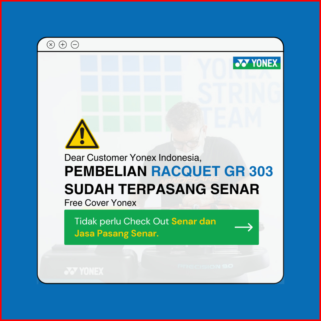 Yonex Badminton Racket Gr 303 Red Termasuk Senar Plus Cover