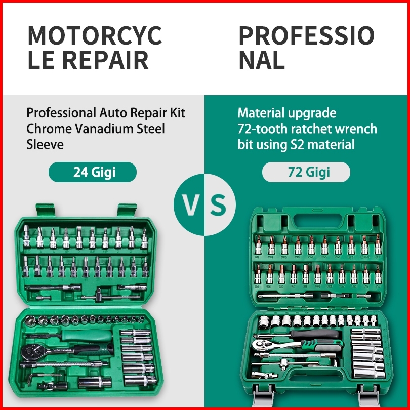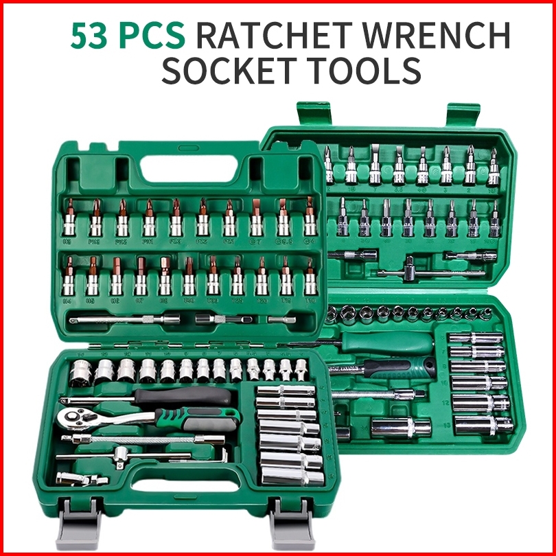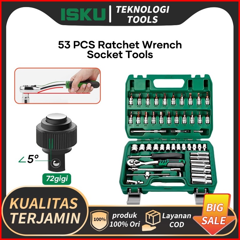 Isku Kunci Sok Set 53pcs-72gigi Gagang Rachet Full Tool Kit 20pcs Kunci Mata Shock 21pcs Drill Bit