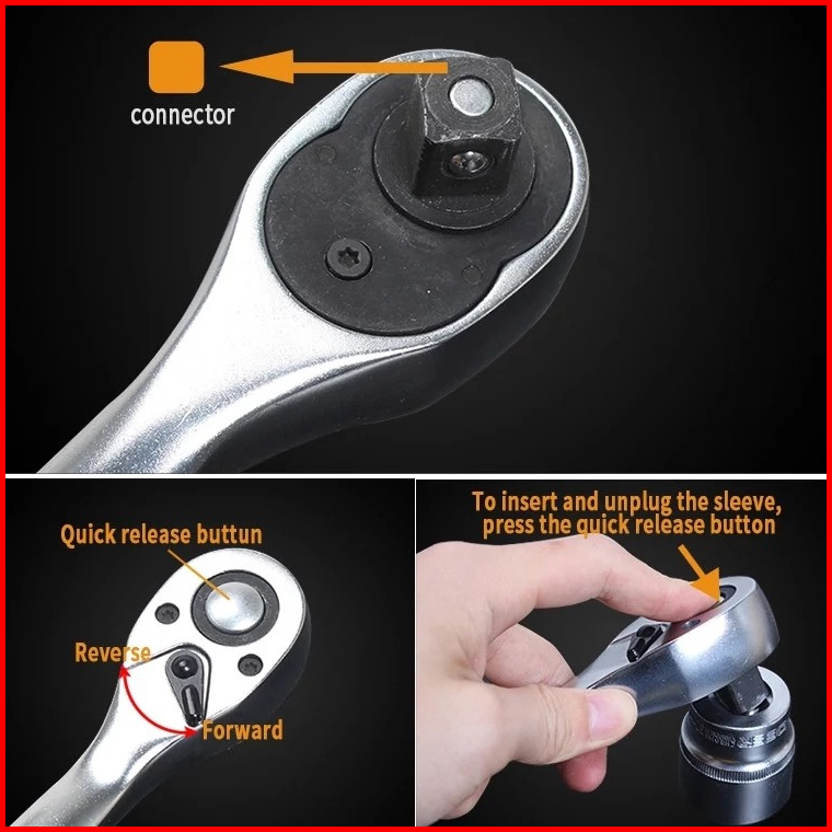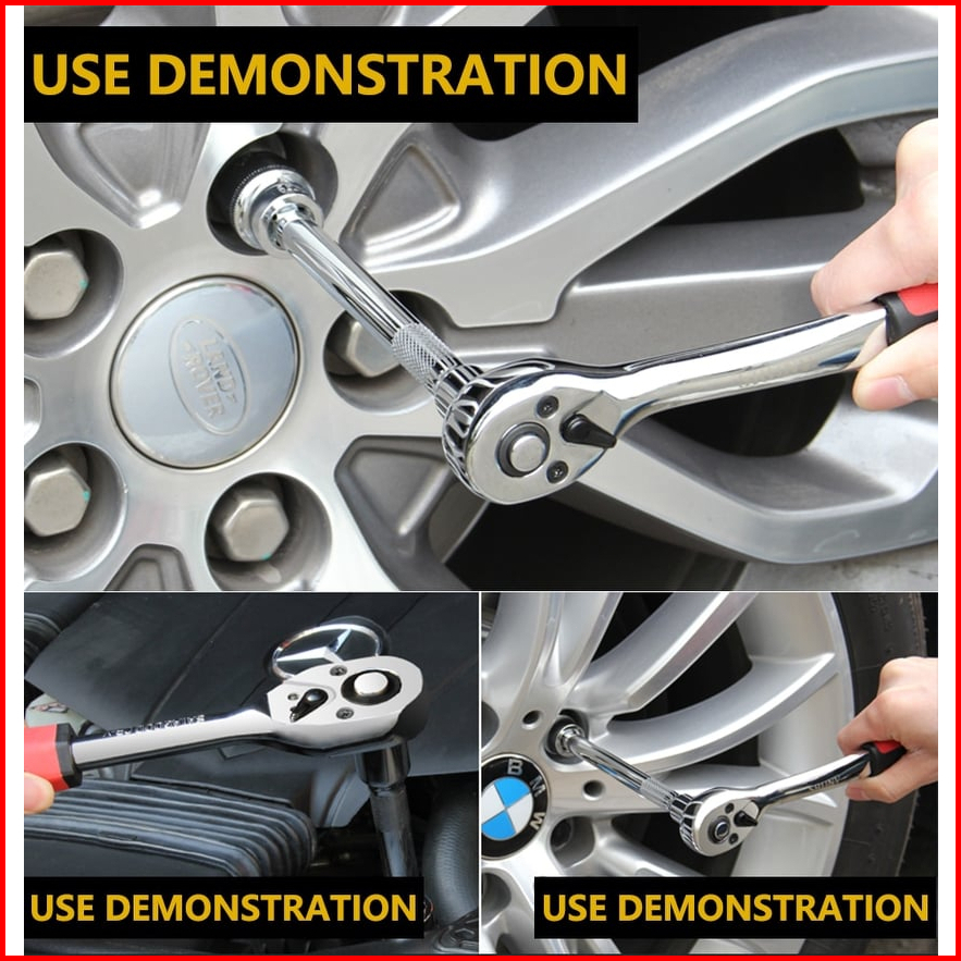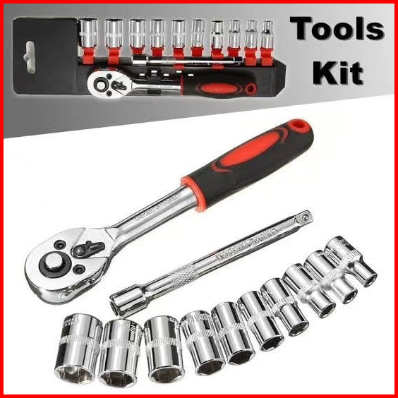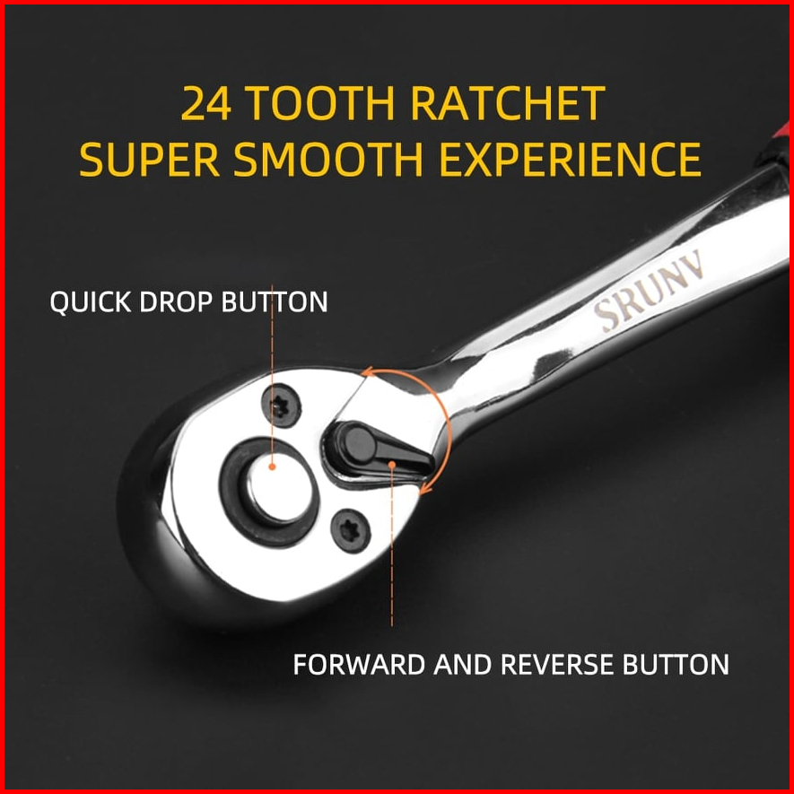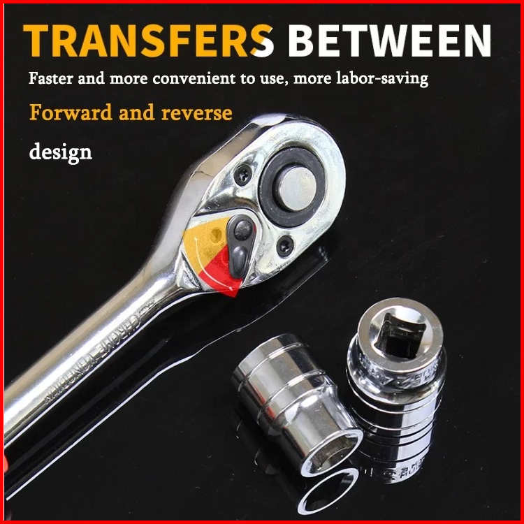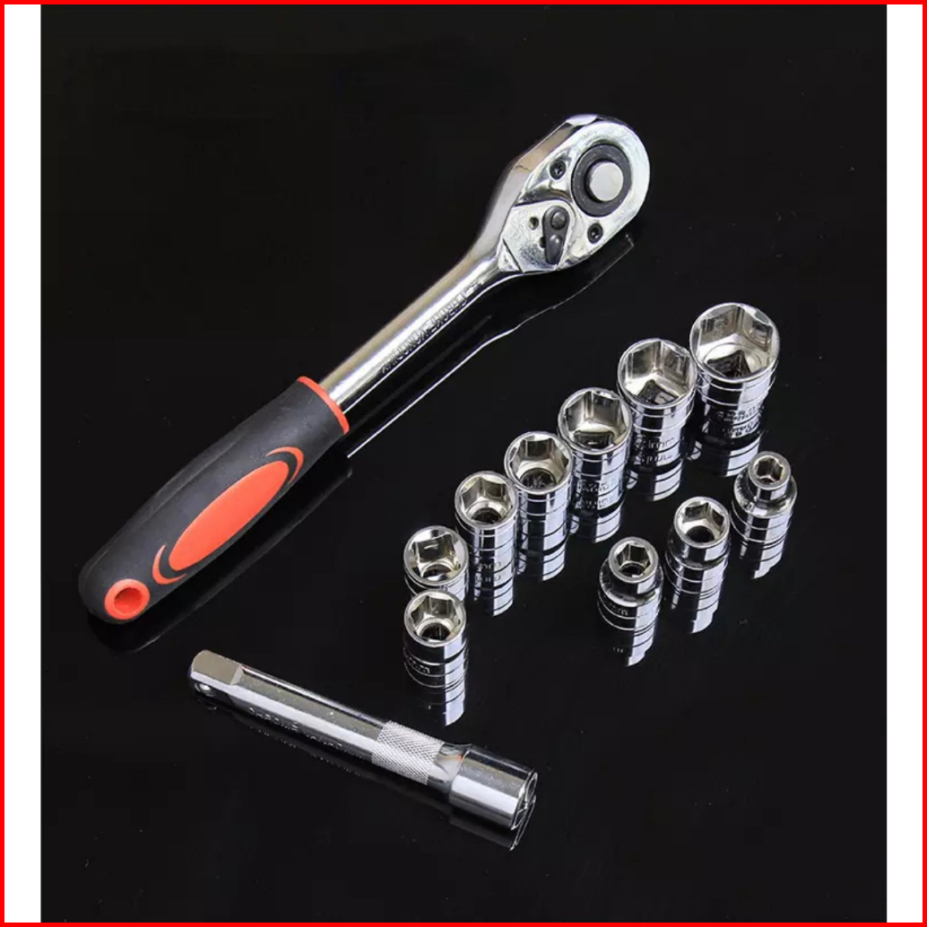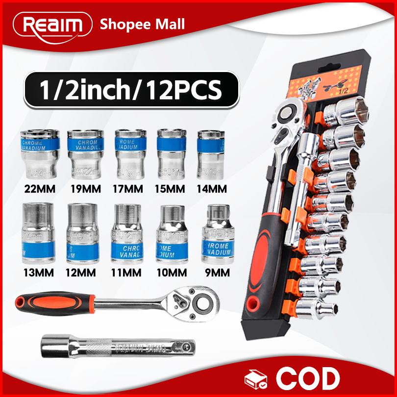Reaim Kunci Set 1 2inci Socket Sok 12pcs Cr-v Kunci Sok Wrench Rachet Alat Perkakas Lengkap Motor Rachet Handle Multifun