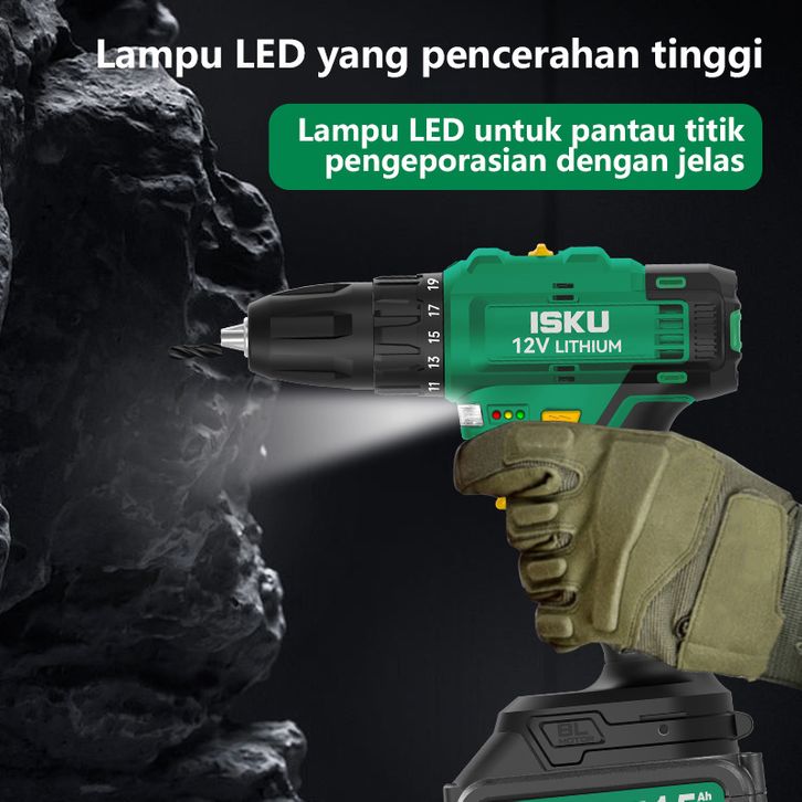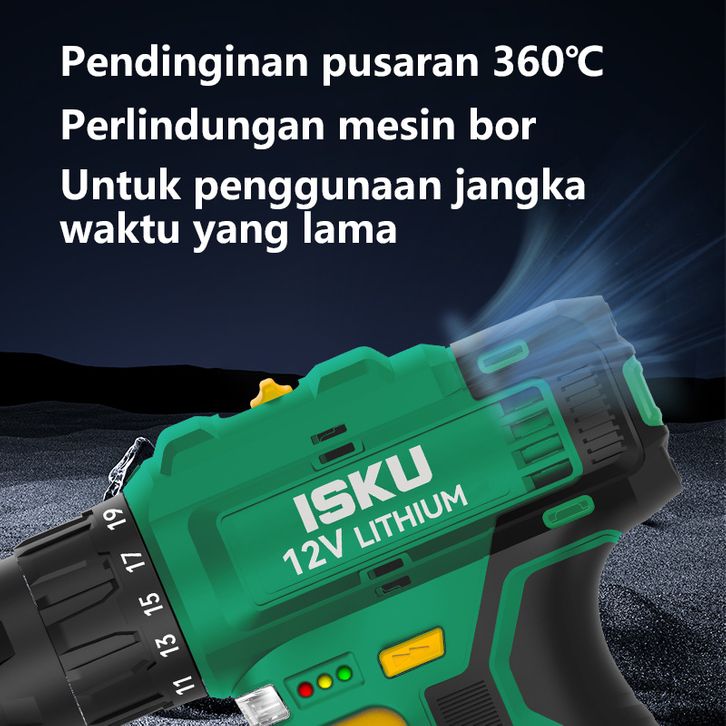 ISKU Bor Listrik 12V Baterai Lithium/Charger Cepat & Tahan Lama Cocok untuk Perbaikan Rumah & Proyek Konstruksi
