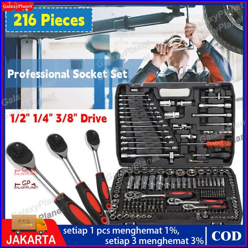 Set Kunci Sok Kunci Shock 216 Pcs Mobil Motor Lengkap Socket Tool Kit Set Pas Ring Motor Mobil Kunci Socket 1 4 Obeng Sh
