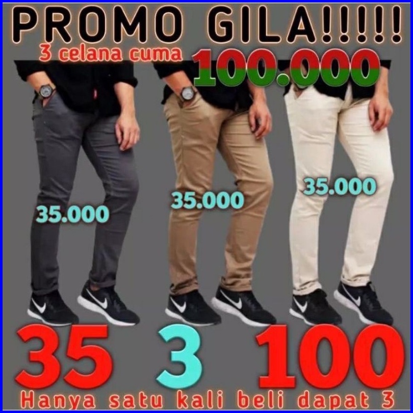 Promo Celana Chinos 90 Ribu Dapat 3 Pcs Celana Panjang Pria Kekinian