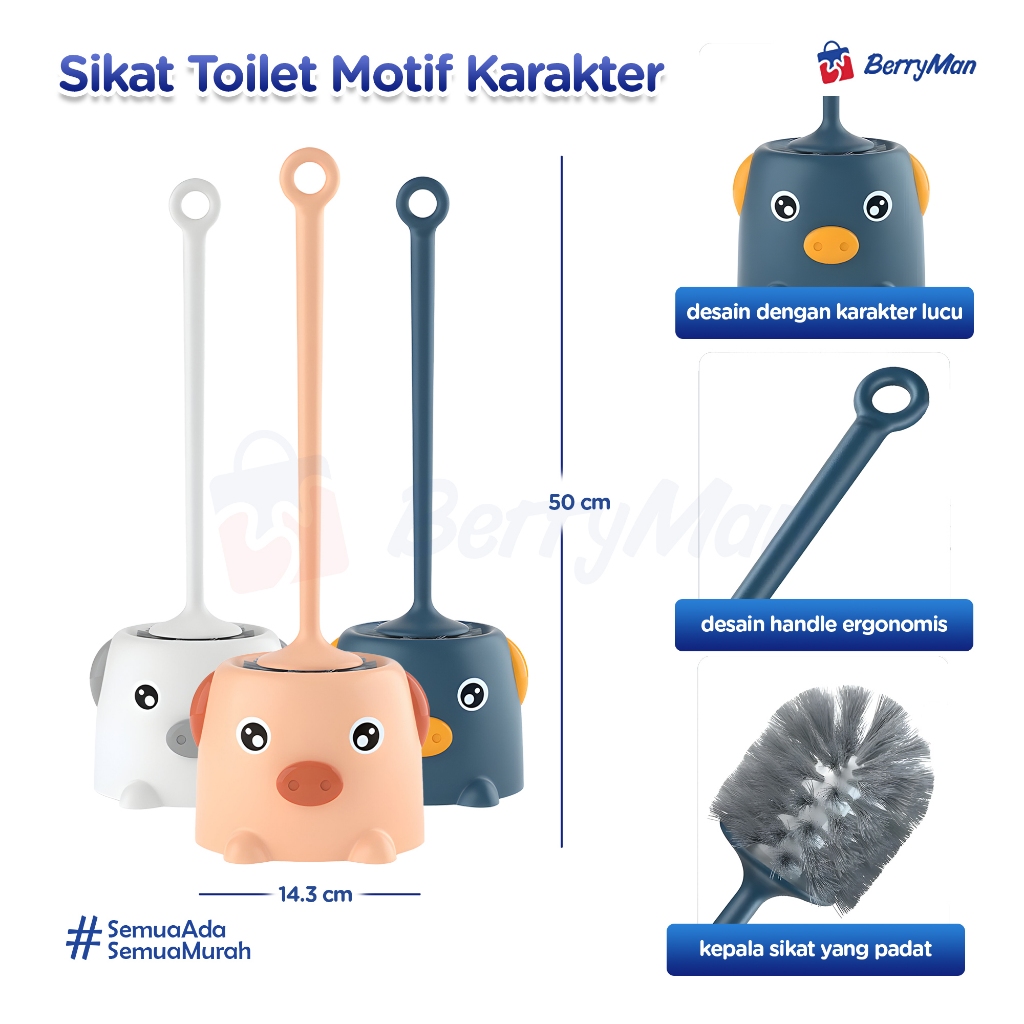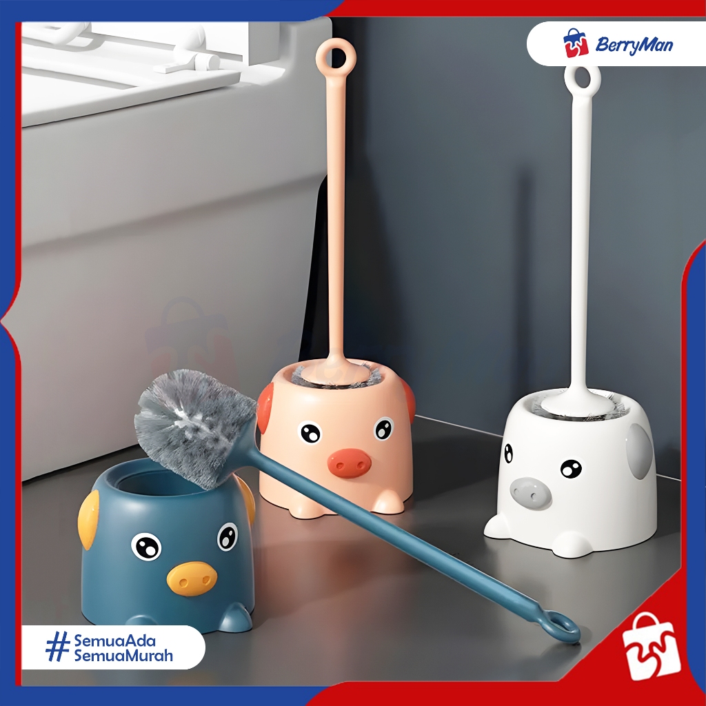 Sikat Pembersih WC Toilet Kamar Mandi Gagang Panjang Dengan Tatakan Karakter Babi Lucu