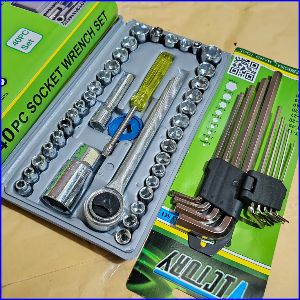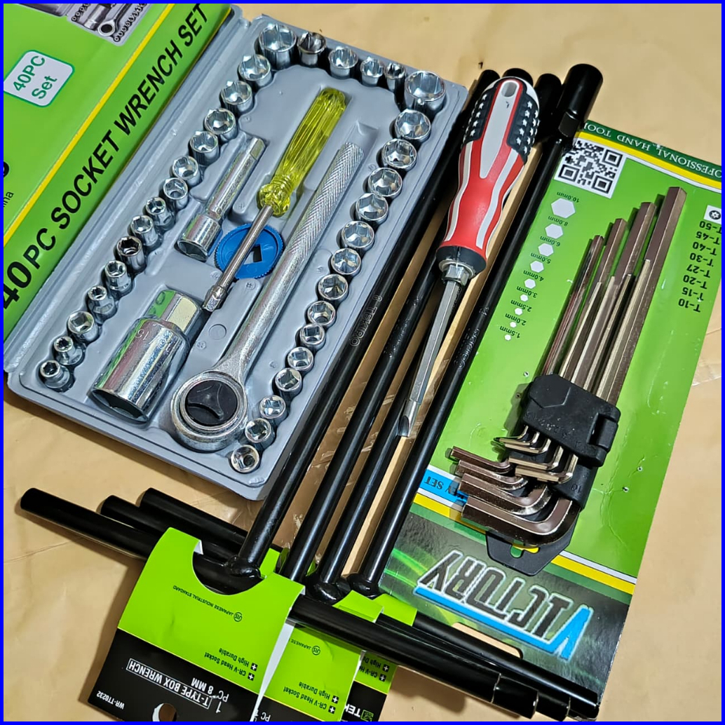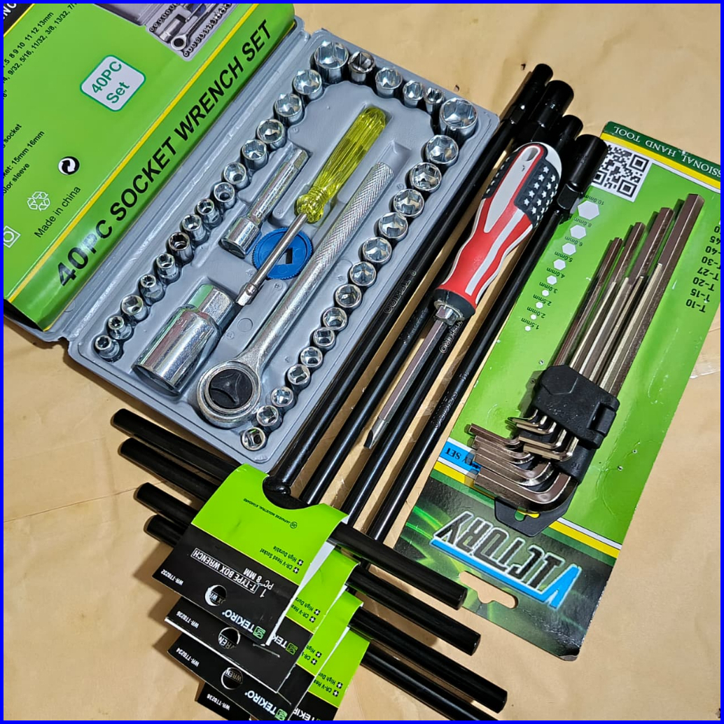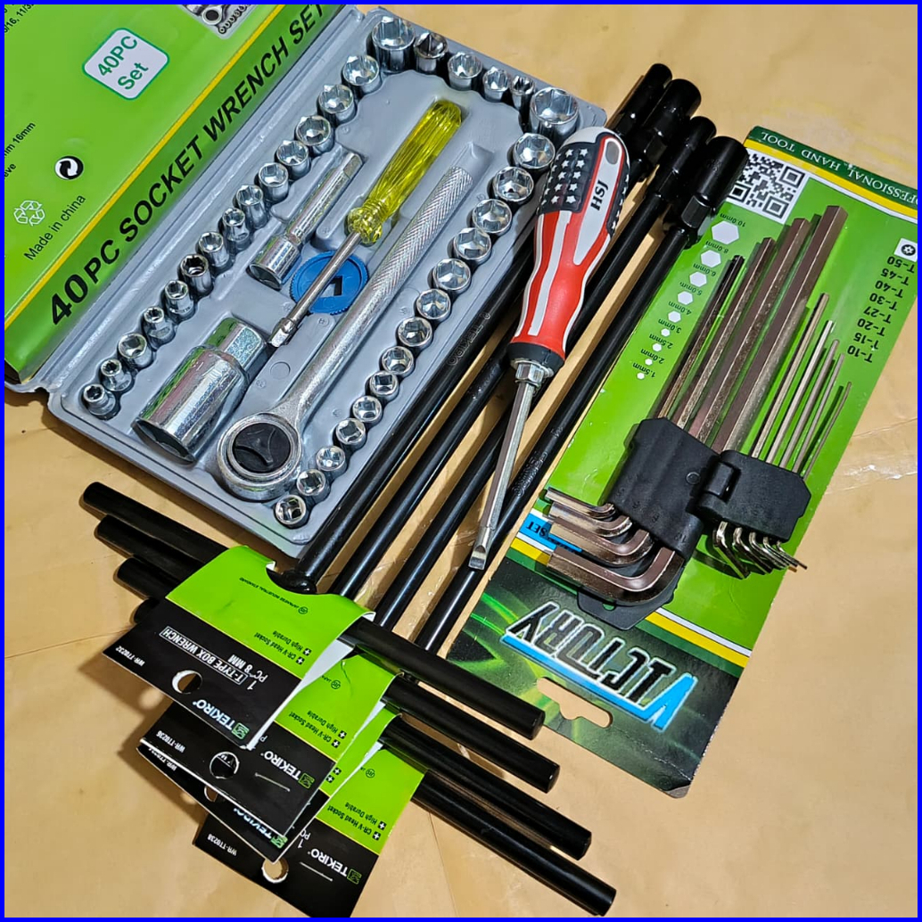 Tekiro Kunci T 4pcs 8-10-12-14mmn Shock Sock Set 40 Pcs Kunci L Set 9 Pcs Panjang