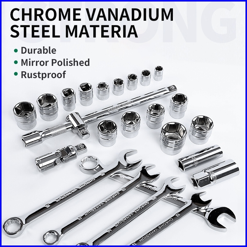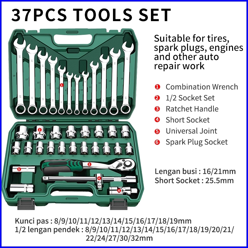 Isku Tool Kit Set Alat Kunci Sok Set 37 53pcs 24gigi Kunci Pas Set 12pcs 8-19mm Kunci Mata Sok Set Lengkap Kombinasi Gag