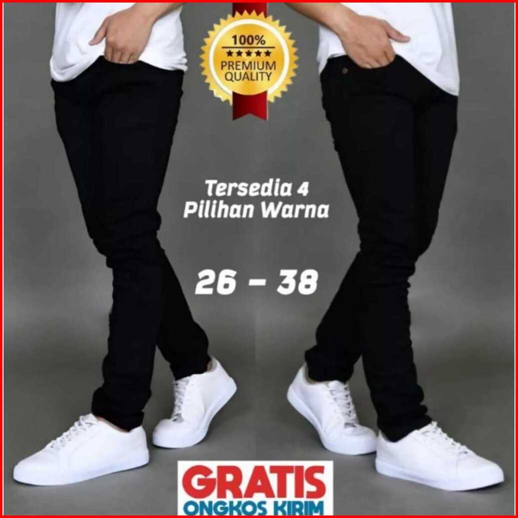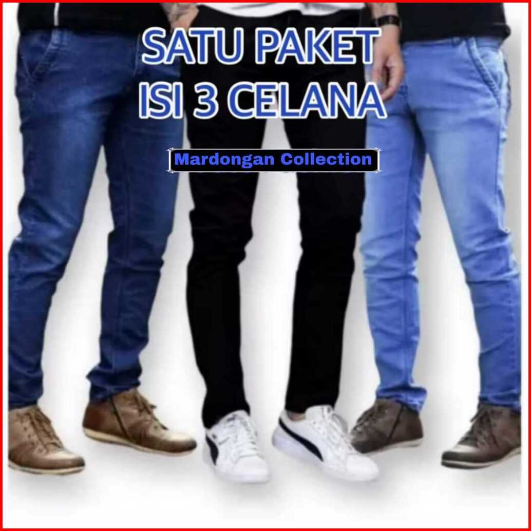 Hemat Satu Paket Isi Tiga Celana Jeans Pria Dewasa Keren Gaul Bahan Ngaret Model Pensil Slim Fit - Jins Panjang Cowok Te