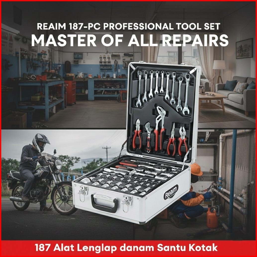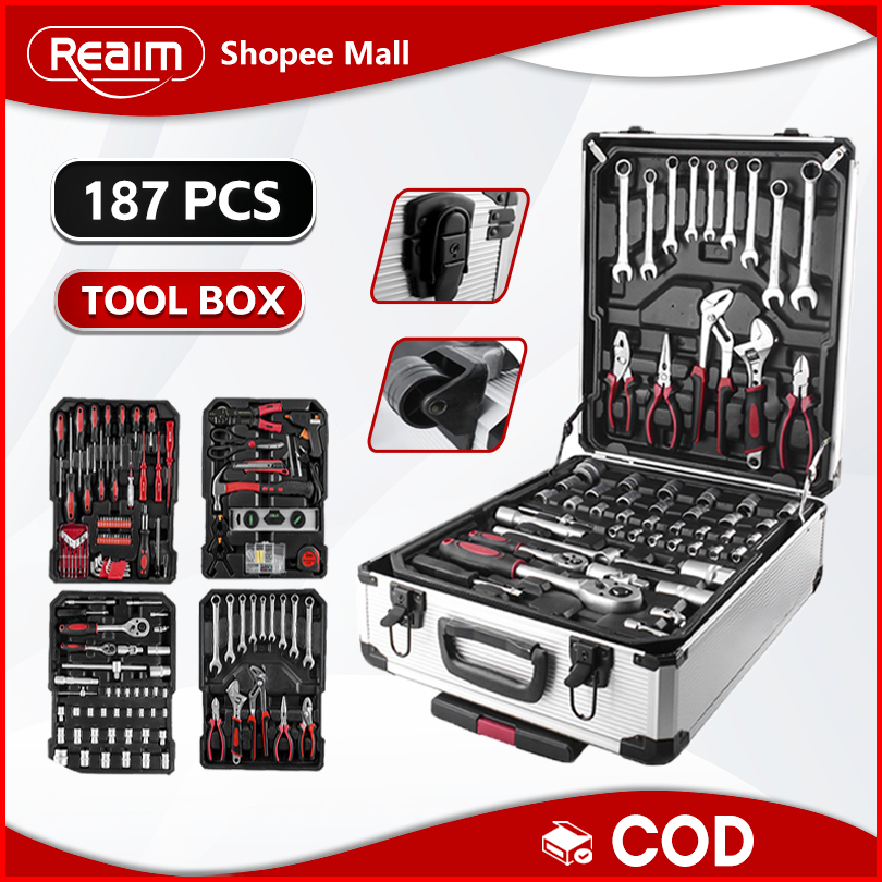 Reaim Tool Kit187pcs Kunci Set Socket Wrench Pas Sok Set Car Repair Tool Kunci Inggris Kunci Sok Set
