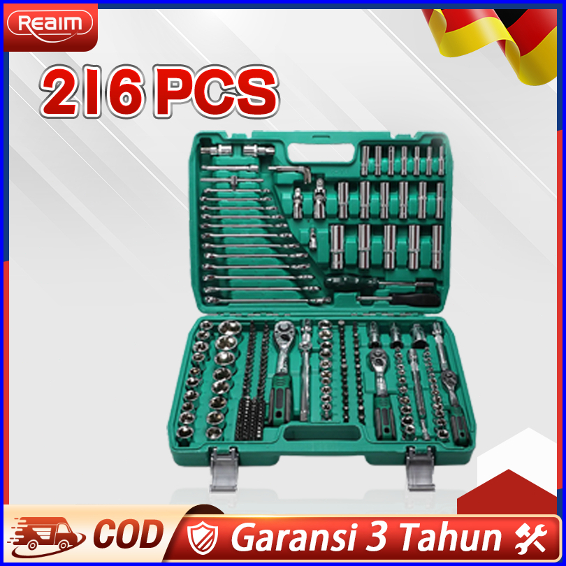 Reaim Kunci Shock Set 216 Pcs Kunci Socket 1 2 Full Tool Kit Perkakas Mobil -151 172 216 Pcs Set Perbaikan Mobil Motor
