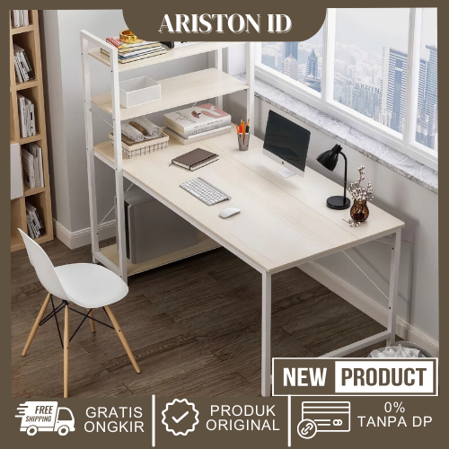 E-TIFE Meja Belajar Minimalis Meja Belajar Dengan Rak Buku Meja Kerja Dengan Rak Serbaguna (H Table)