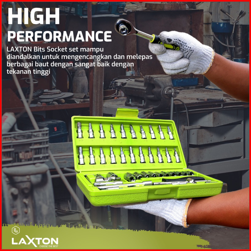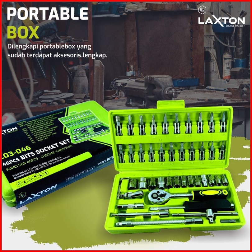 Laxton Kunci Sok Shock Set Motor Socket 46 Pcs L03-046 Murah Laris
