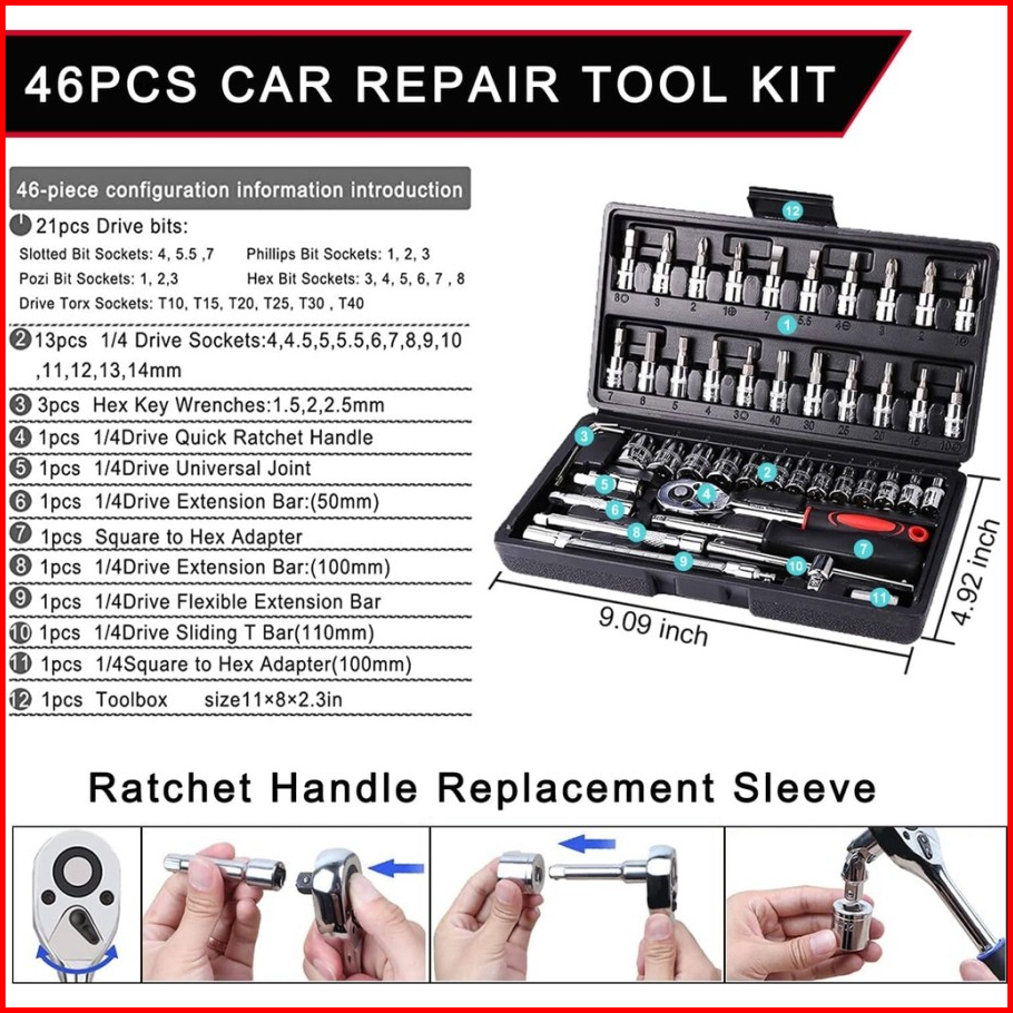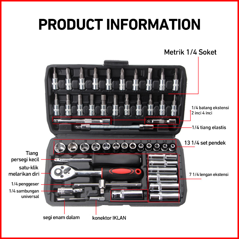 Usefultools Kunci Sok 46 Pcs Set Socket 1 4 Full Lengkap Socket Tool Kit Pas Ring L Motor Mobil