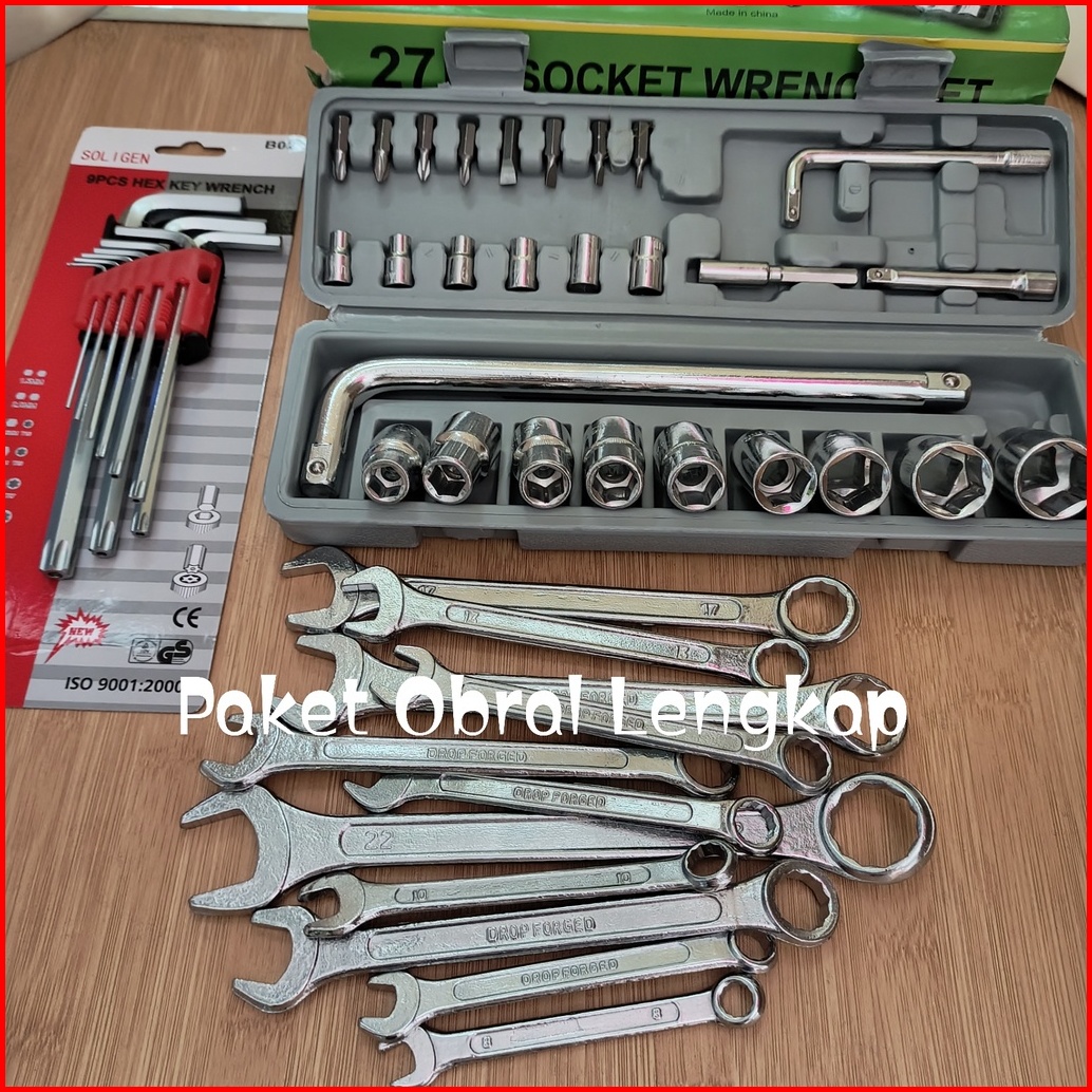 Paket Kunci Shock Set 27pcs Kunci Ring Pas 11pcs Kunci L Set 9pcs Kombinasi Kunci Shock Set