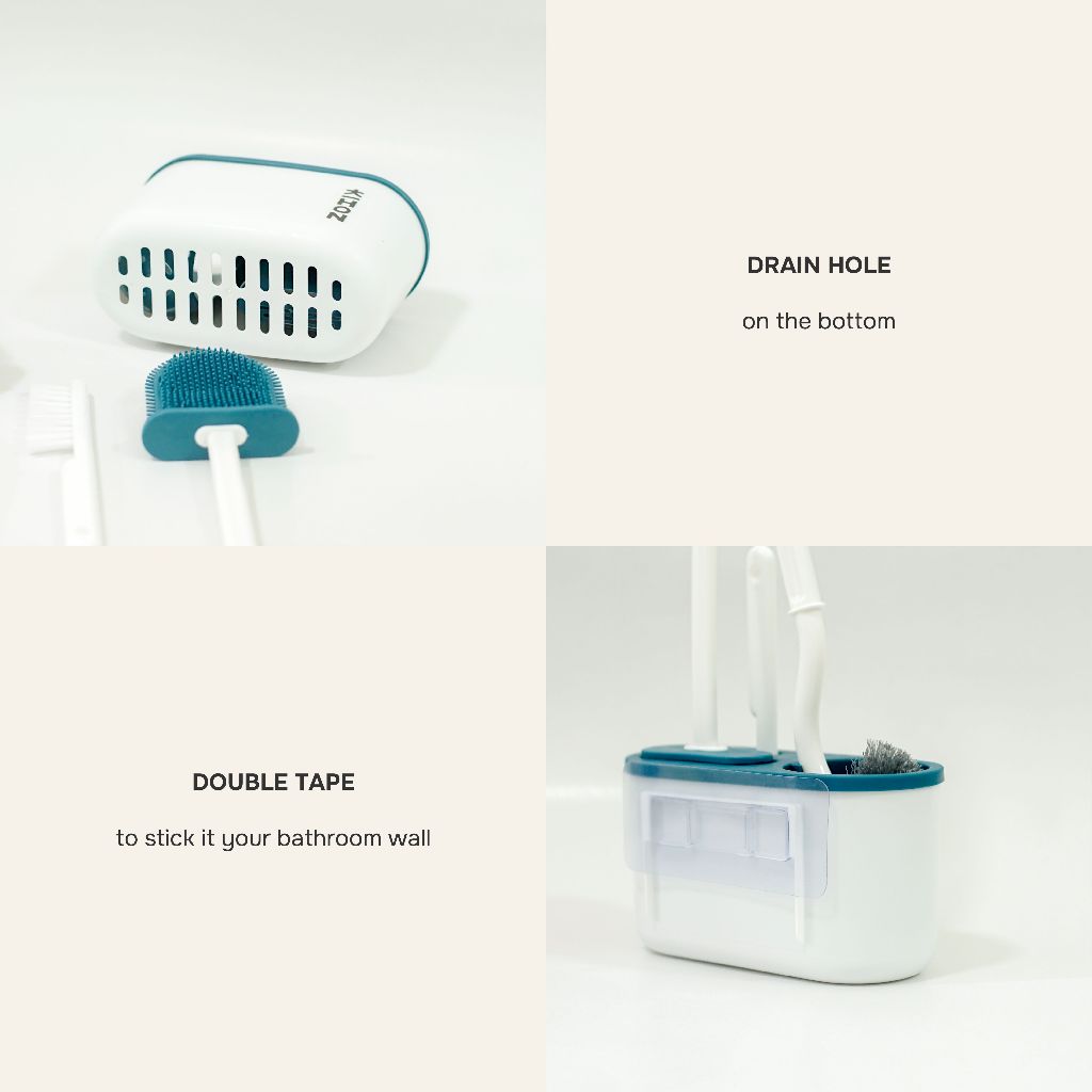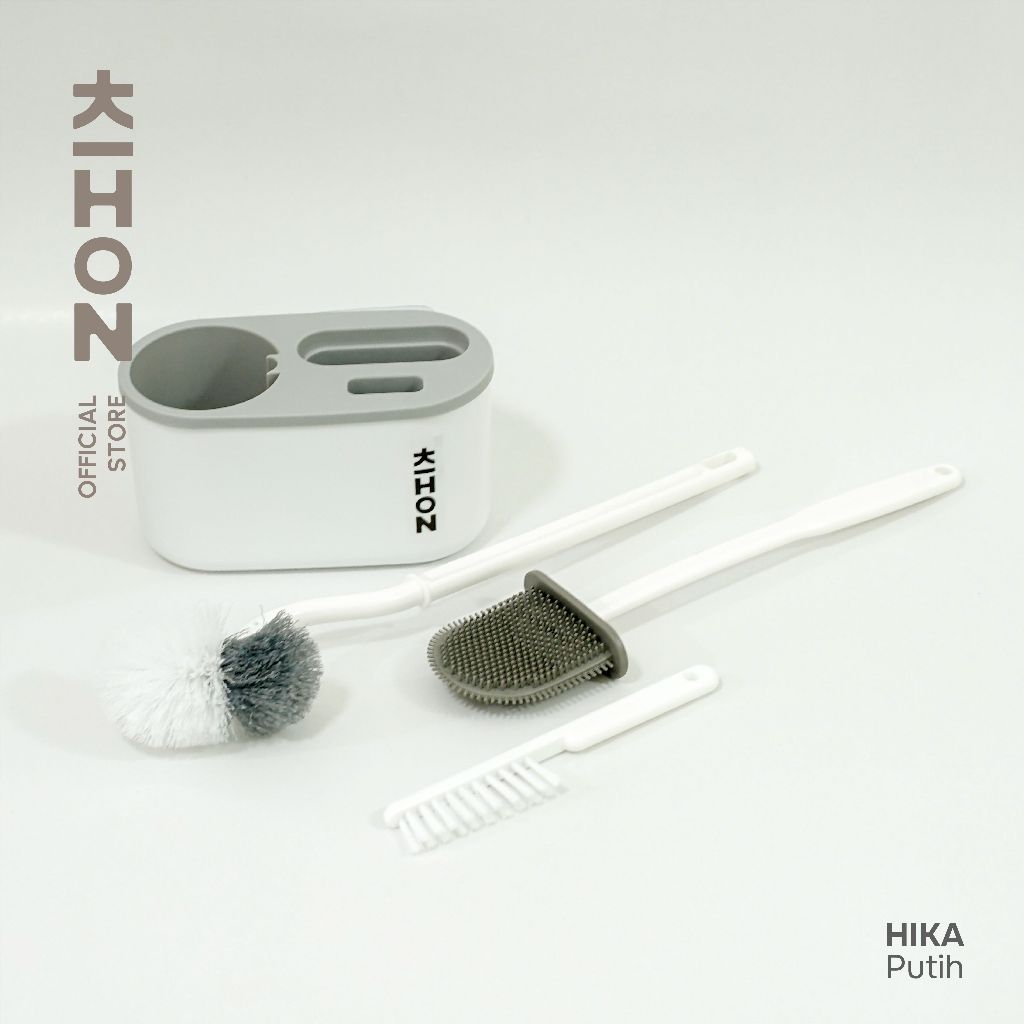 KIHON HIKA Toilet Brush Set 3 in 1 Sikat Pembersih Kamar Mandi Silikon