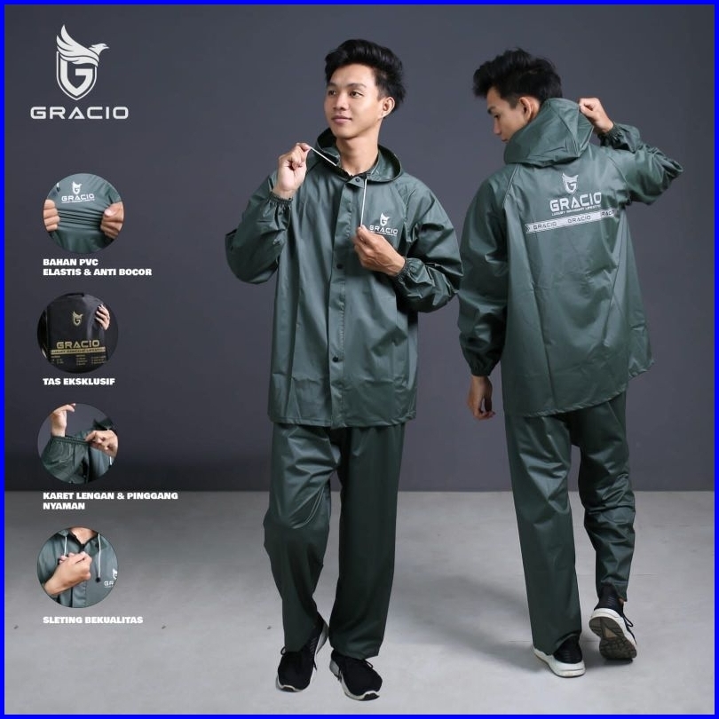 Raincoat Jas Hujan Dewasa Terbaik Pria Wanita By Gracio Mantel Hijau Army