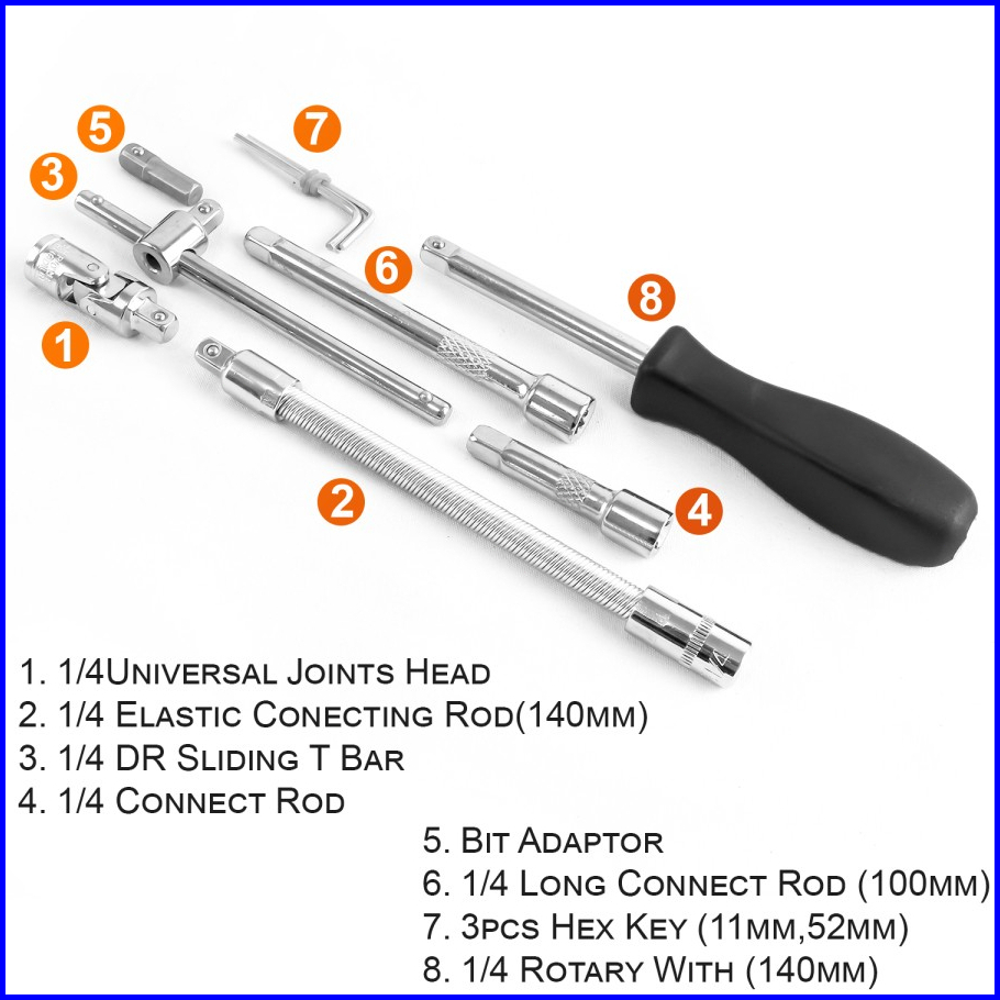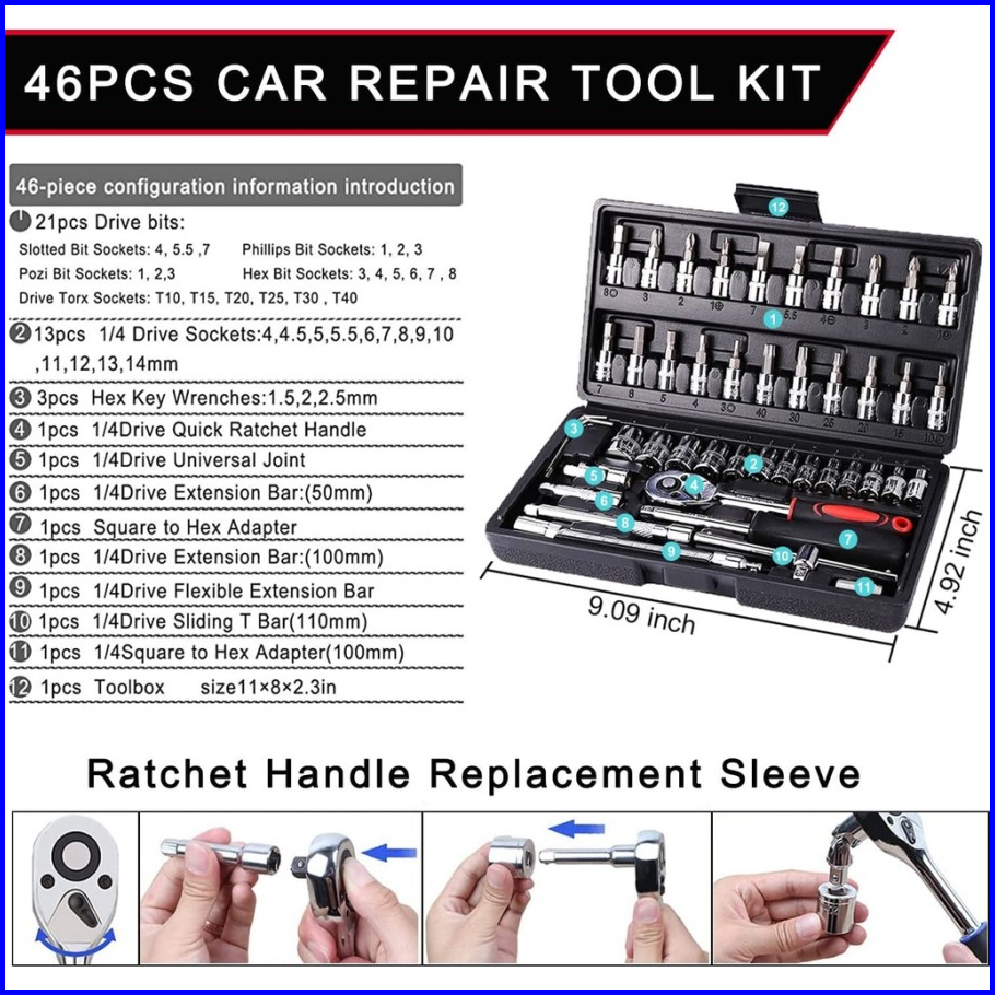 Homix 46pcs Kunci Sok Set Socket Full Lengkap Socket Tool Kit Pas Ring Motor Kunci Socket Wrench Pas Sok Shock