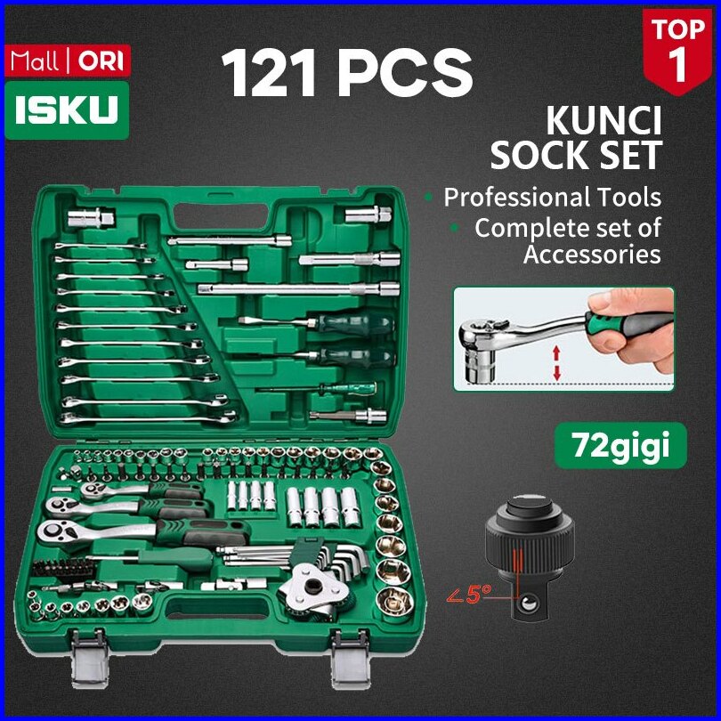Isku Tools Set 121pcs 72gigi Kunci Shock Set Lengkap Kombinasi Termasuk 1 Set Kunci Pas Ratchet Lengkap 72gigi 1 2 1 4 3