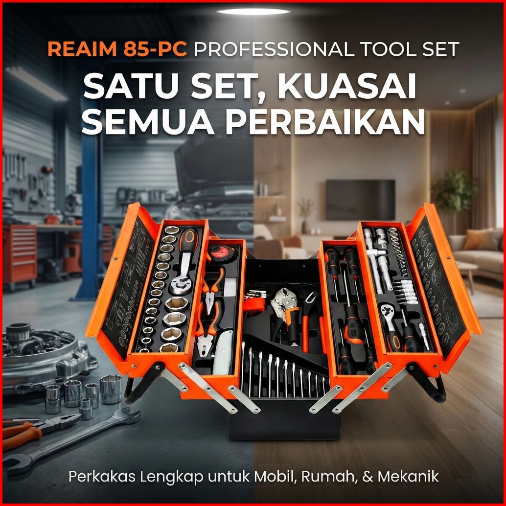 Reaim Tool Kit 85 Pcs Tool Box Perkakas Kunci Sok Set Set Lengkap Tool Box Kunci Shock Set