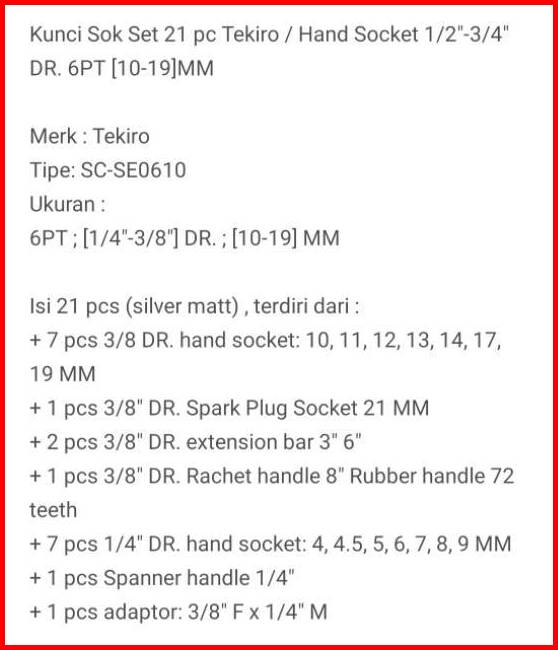 Tekiro Kunci Shock Sock Set 21 Pcs Multifungsi
