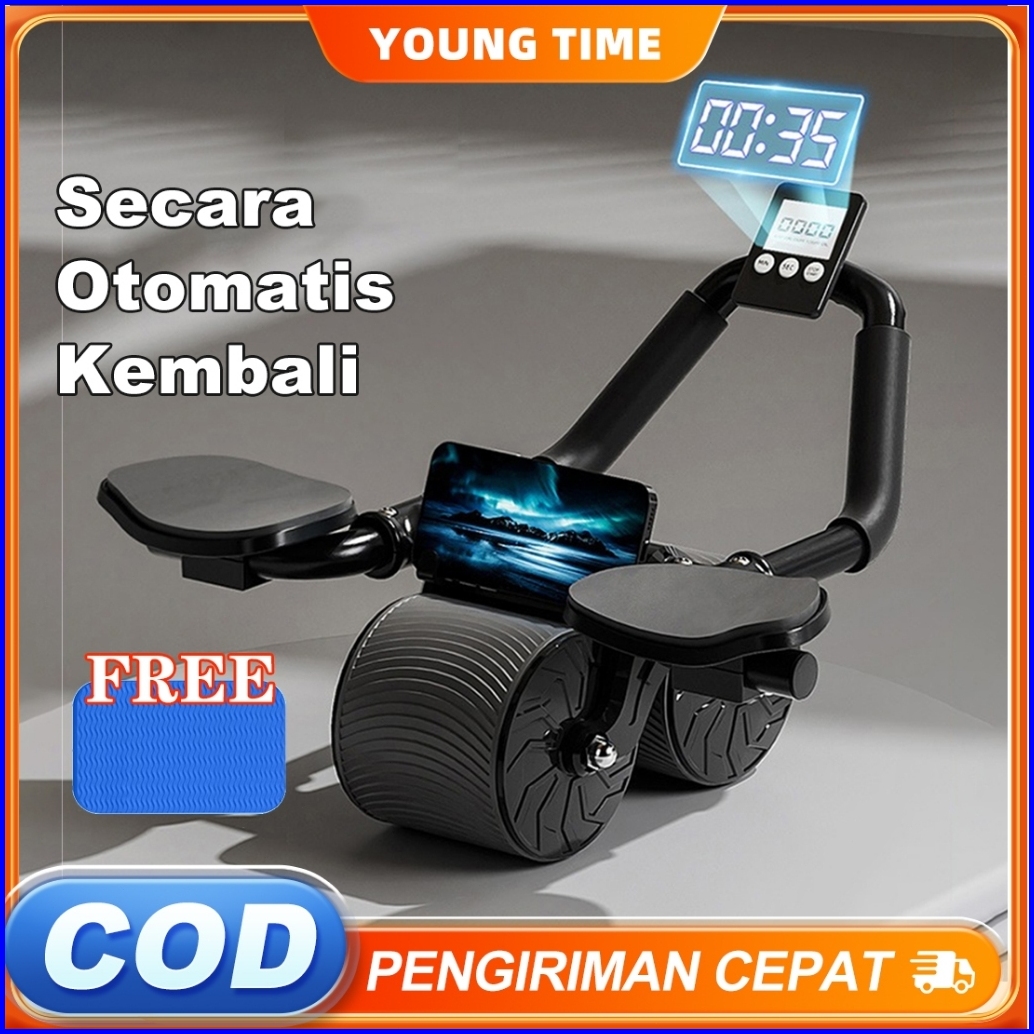 Y T Ab Wheel Roller Ab Wheels Plank Trainer 2 In1 Abdominal Core Roller Automatic Rebound Olahraga Gym Fitness