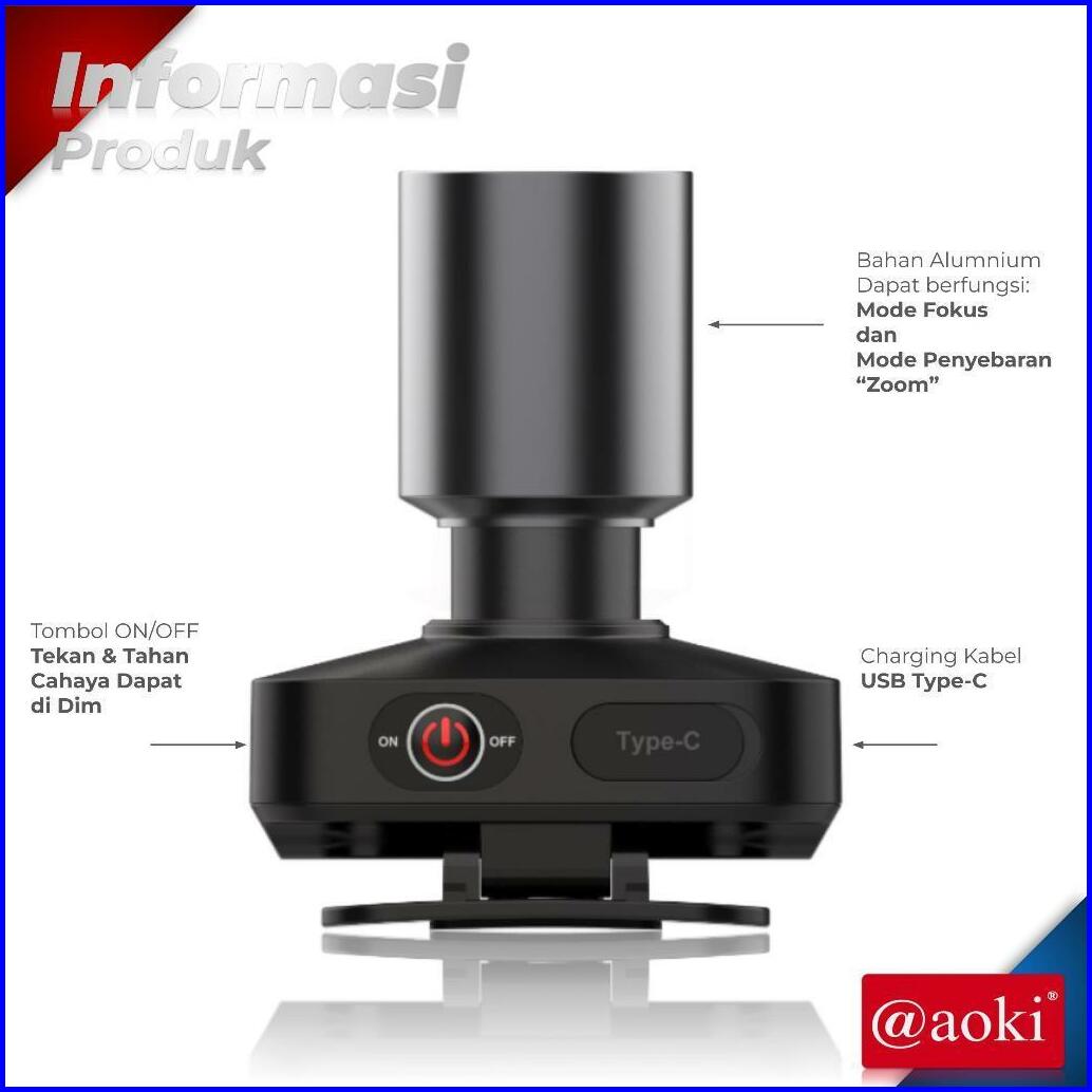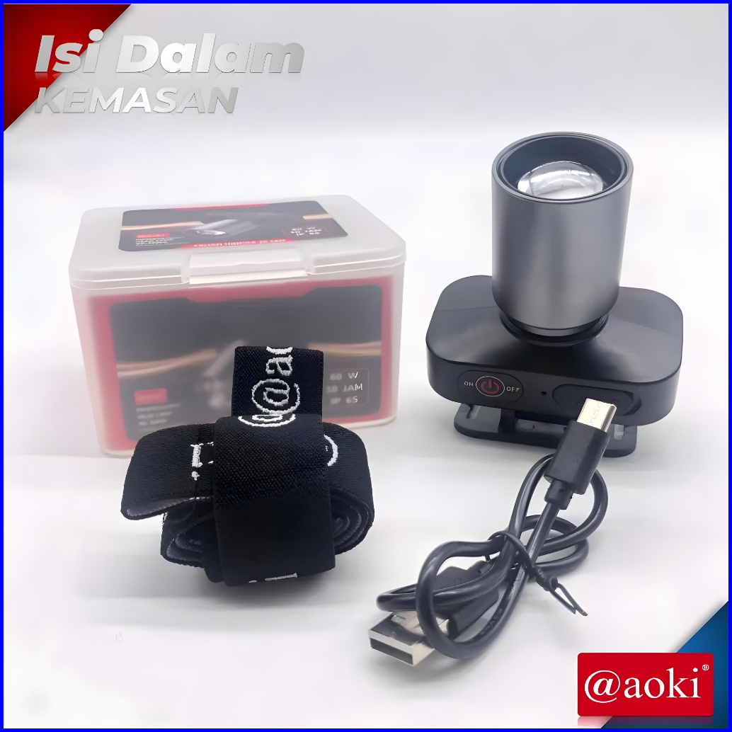 Aoki Senter Kepala Zoom Super Terang Led 60w Rechargeable Usb Type C Senter Kepala Zoom Aoki Ak-3685a