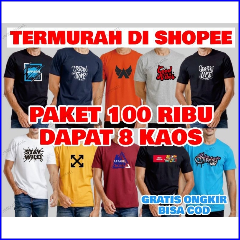 Kaos Distro 100 Ribu Dapat 8 Pcs Kaos Distro Oblong Pria Dan Wanita Lengan Pendek