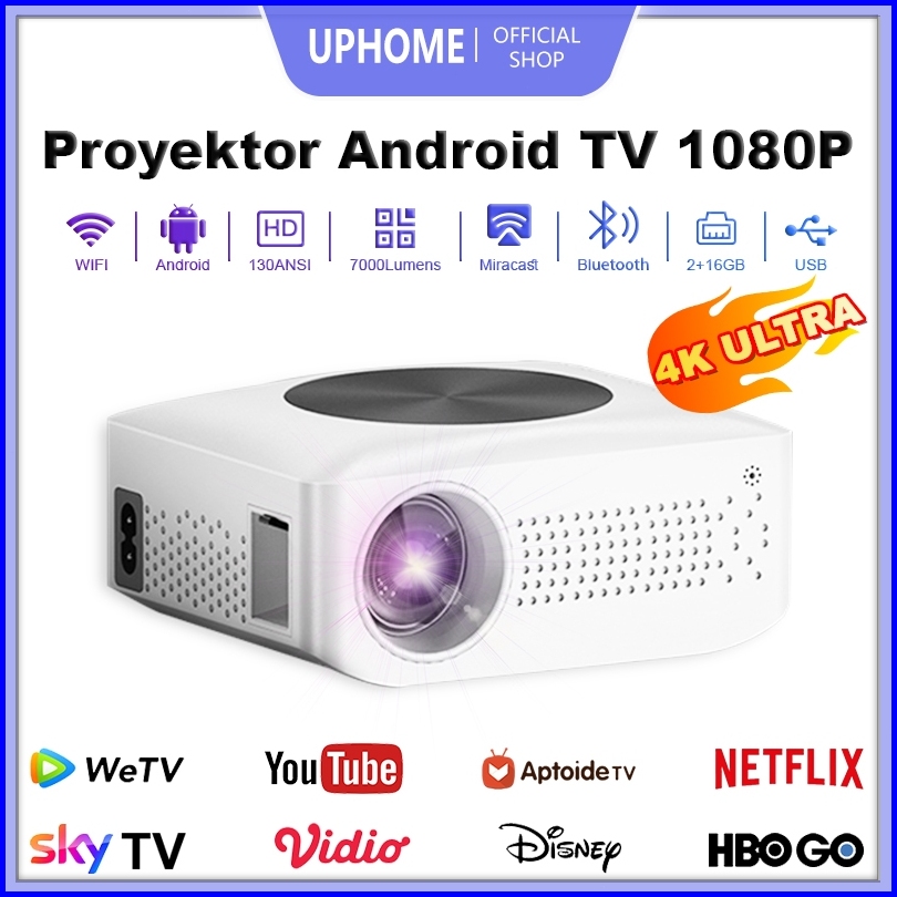 Uphome Proyektor Android Tv 1080p 7000 Lumen Smart Projector Android 9.0 Ram 2g Rom 16g Home Theater Proyektor Proyektor