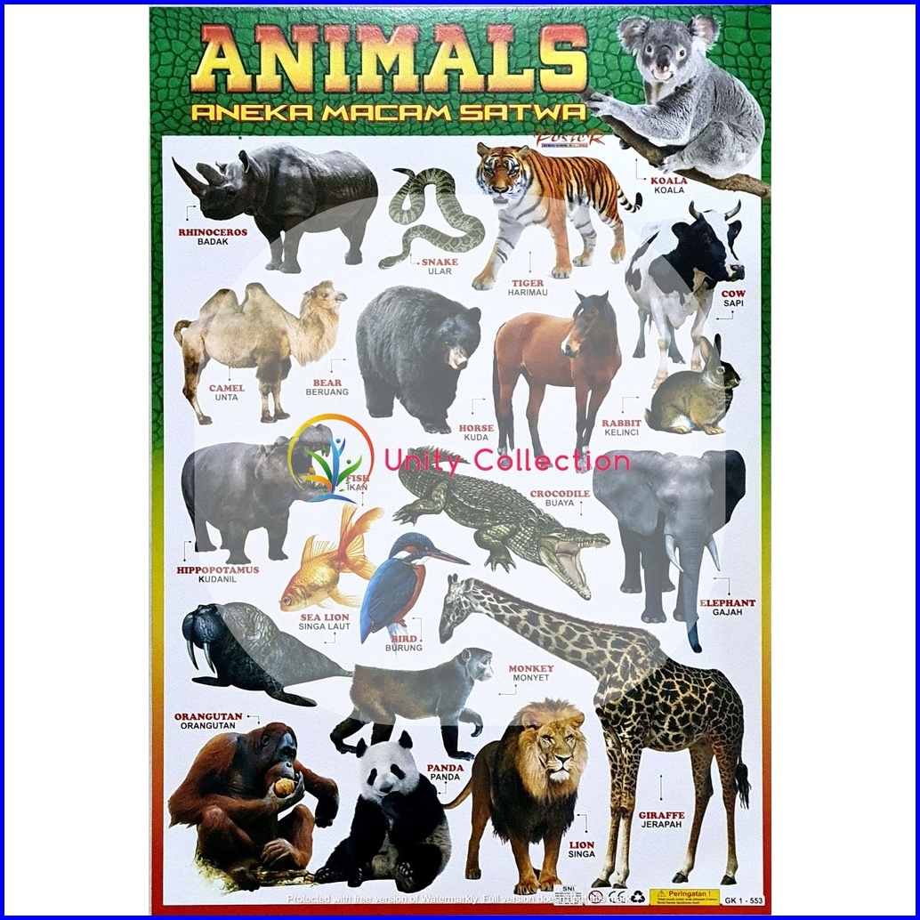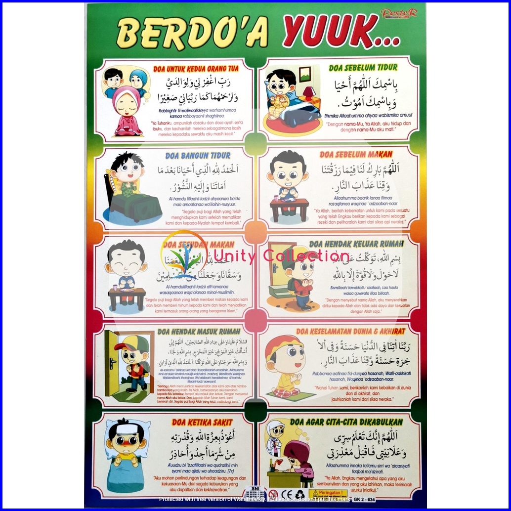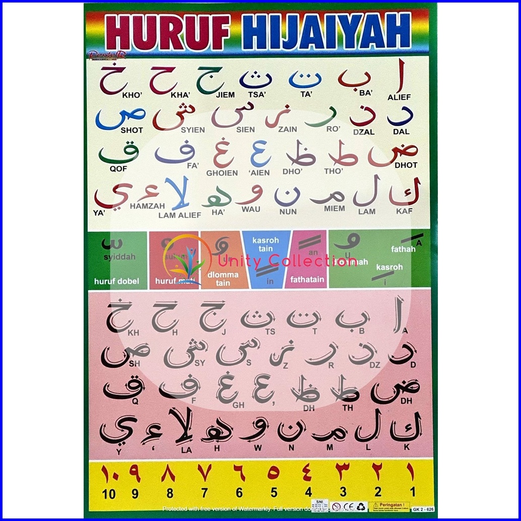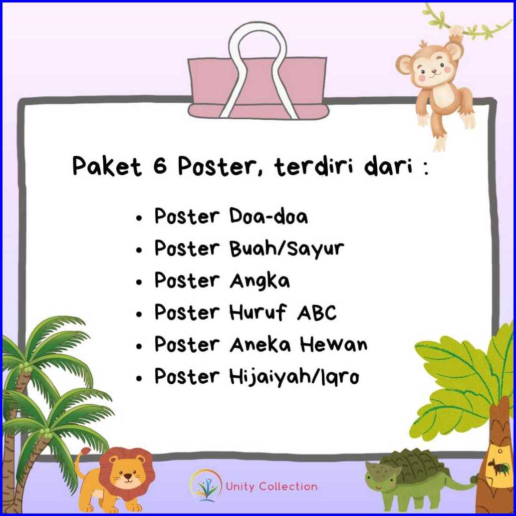 Paket 6 Poster Dinding Edukasi Anak Belajar Gambar Buah Hijaiyah Huruf Alphabet Abc Angka Hewan Doa