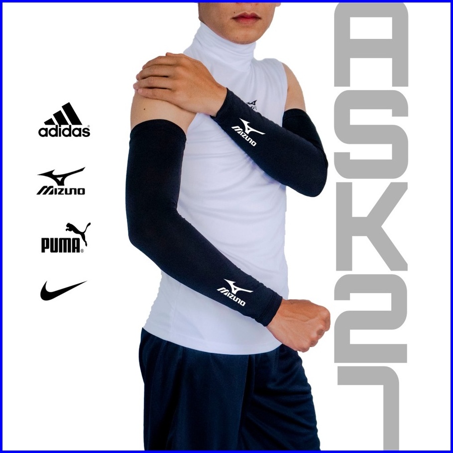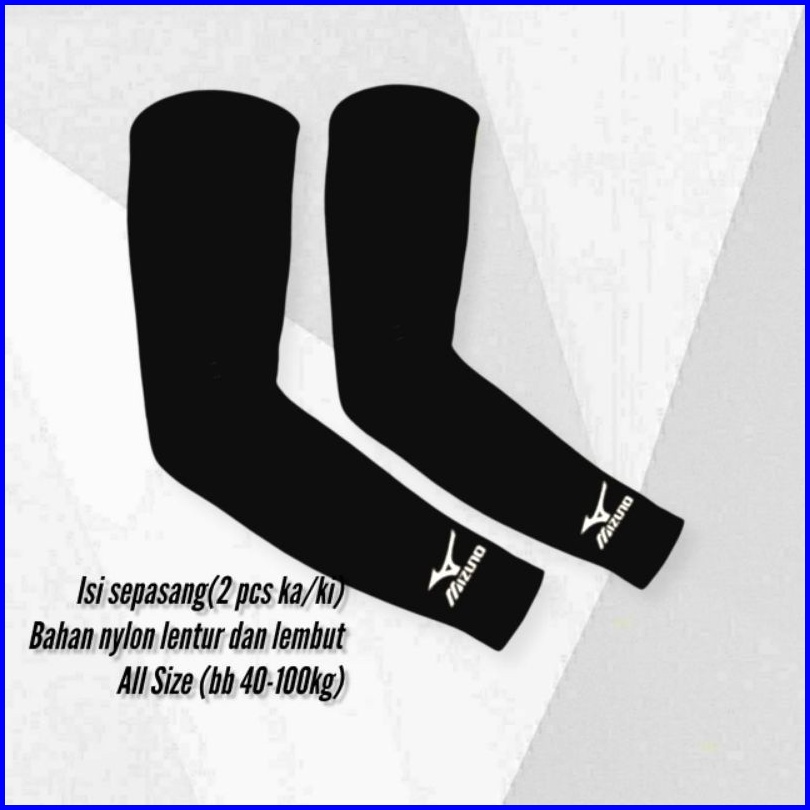 Arm Sleeve Mizuno Manset Tangan Sepeda Sarung Lengan Volly Bersepeda Manset Sporty Sarung Lengan Hitam Polos Dan Logo M1