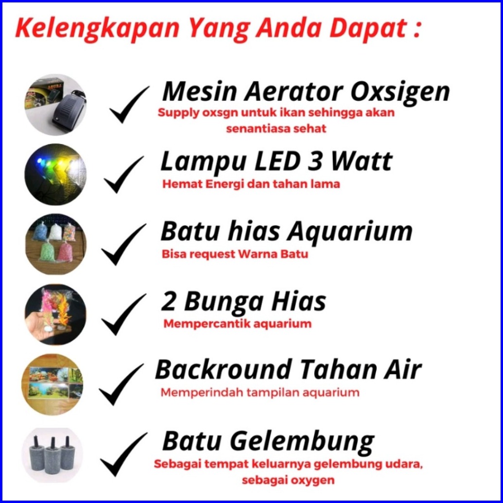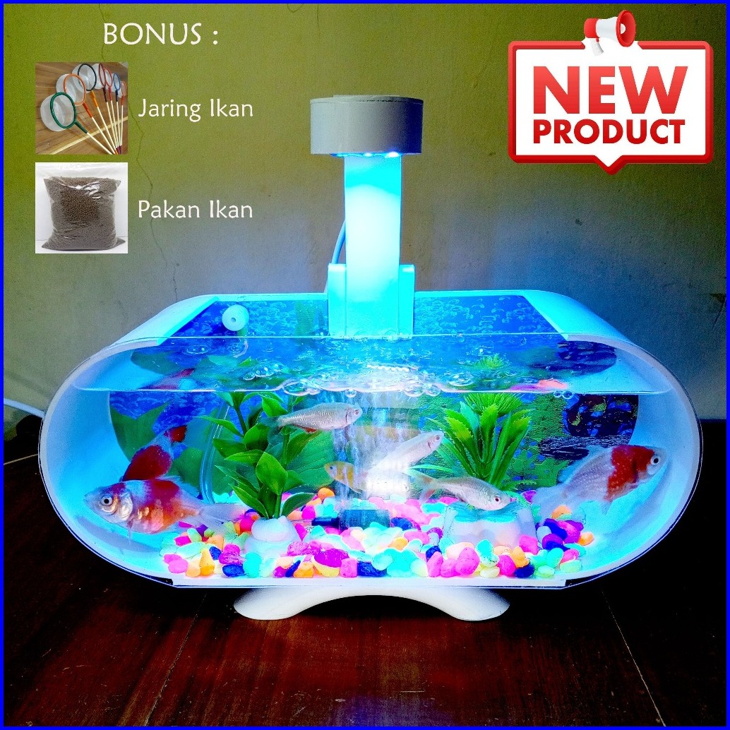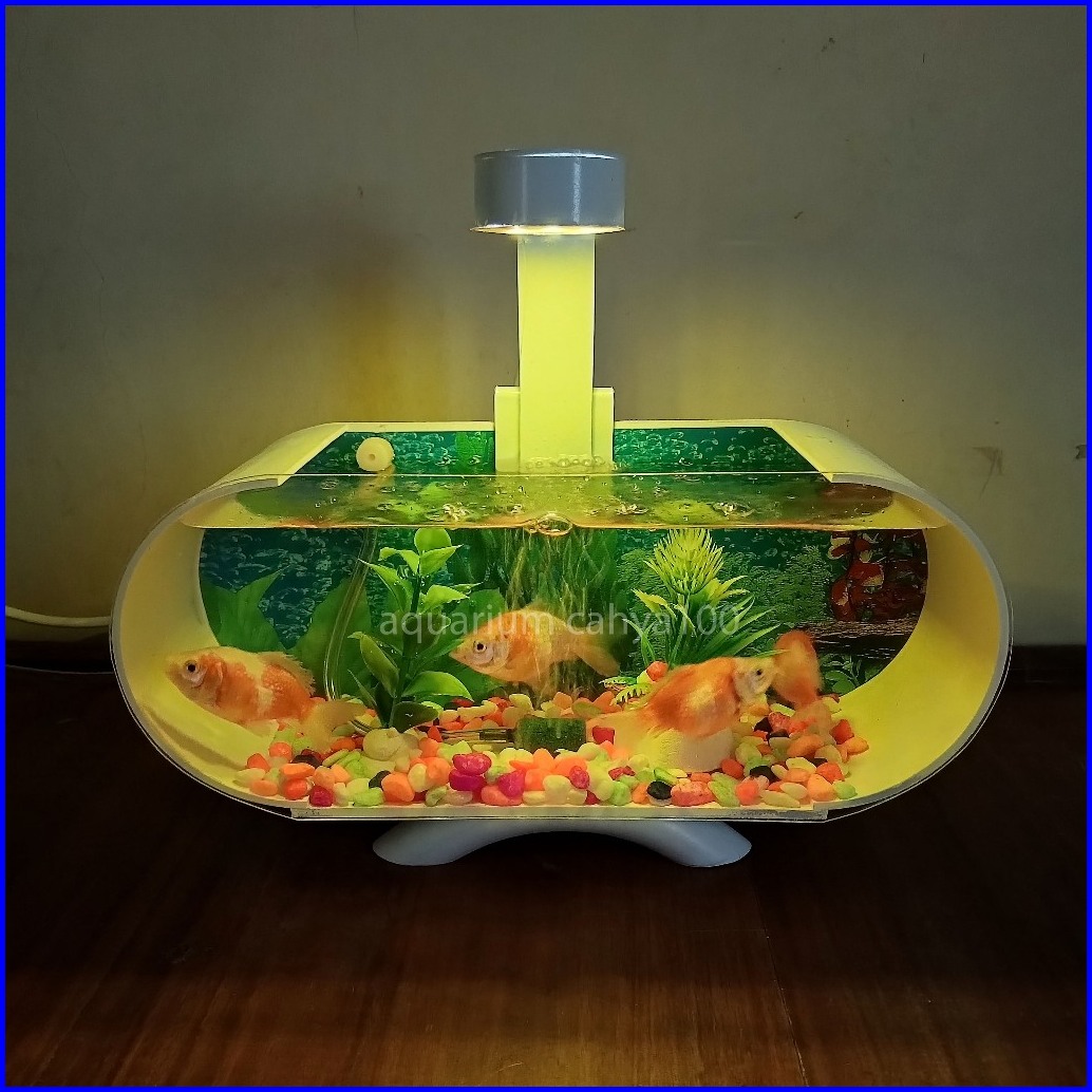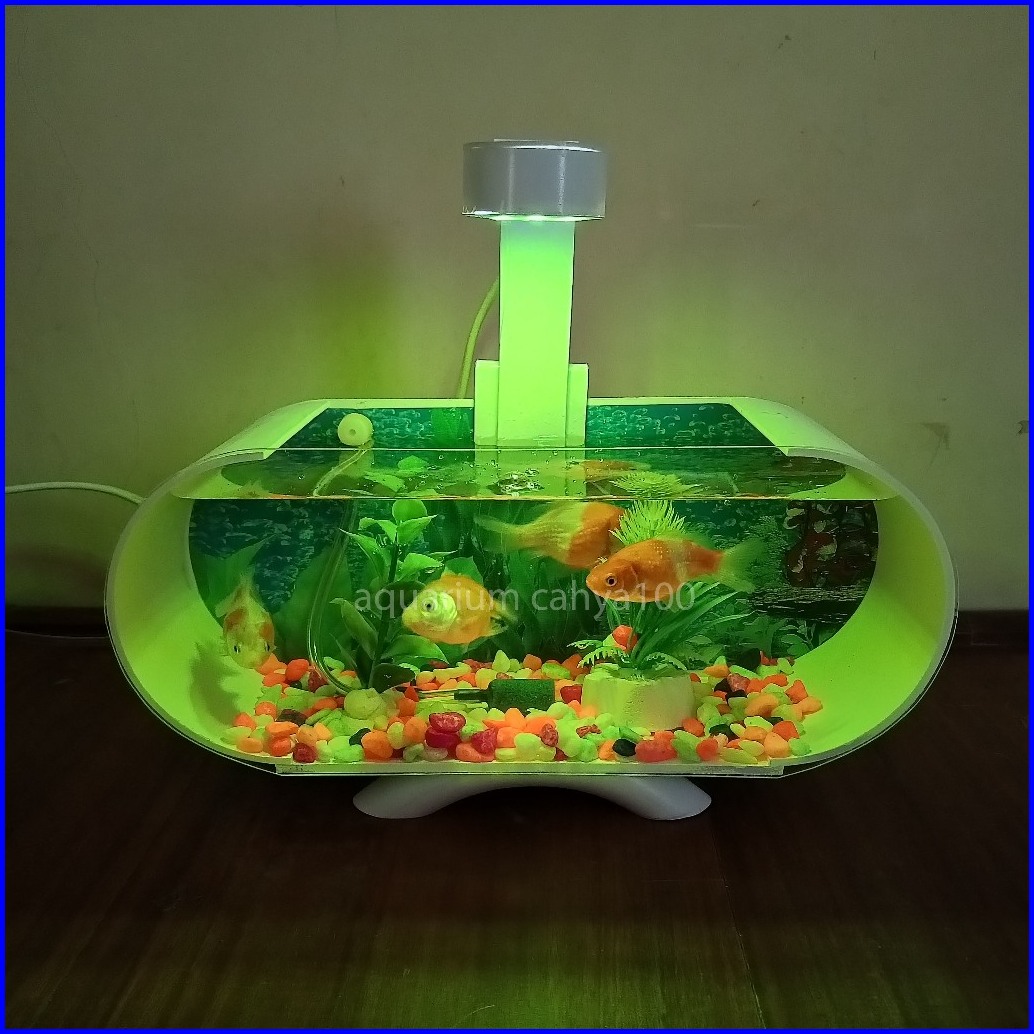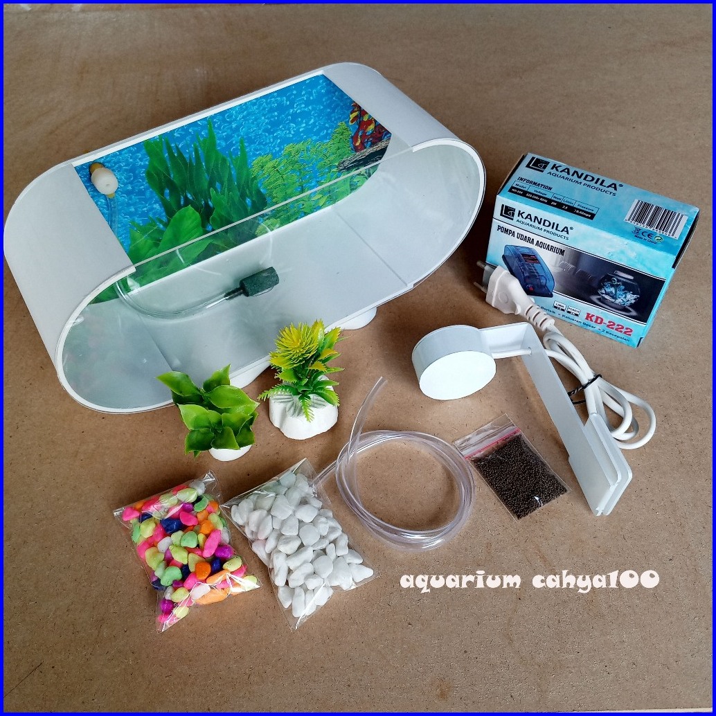 Aquarium Mini Akrilik Minimalis Fullset Plus Mesin Aerator Oxygen Gelembung Dan Lampu