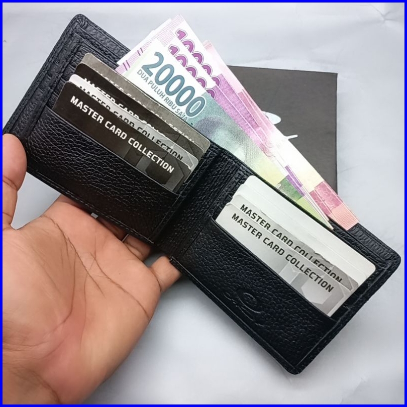Dompet 3 Ruang Penyimpanan Uang Dompet 3 Dimensi Kulit Asli Box Exlusive Black