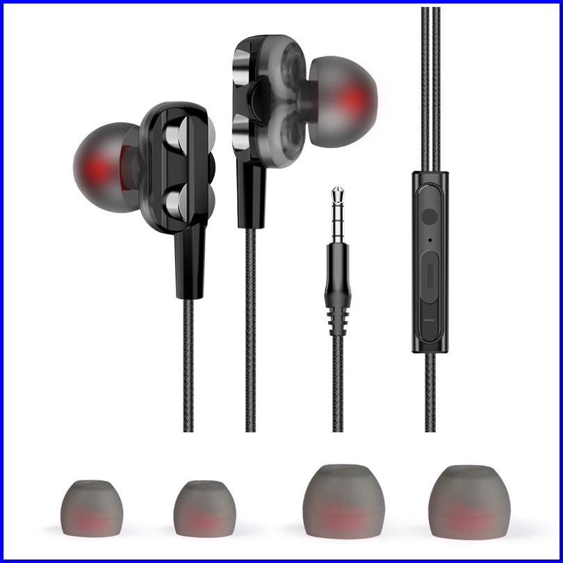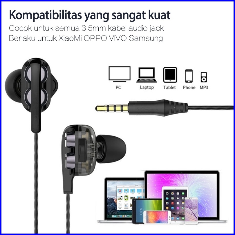 Headset Gaming Dual Hifi Stereo Bass Dengan Mic Dan Kabel Ukuran 3.5mm Untuk Android 4d Earphone