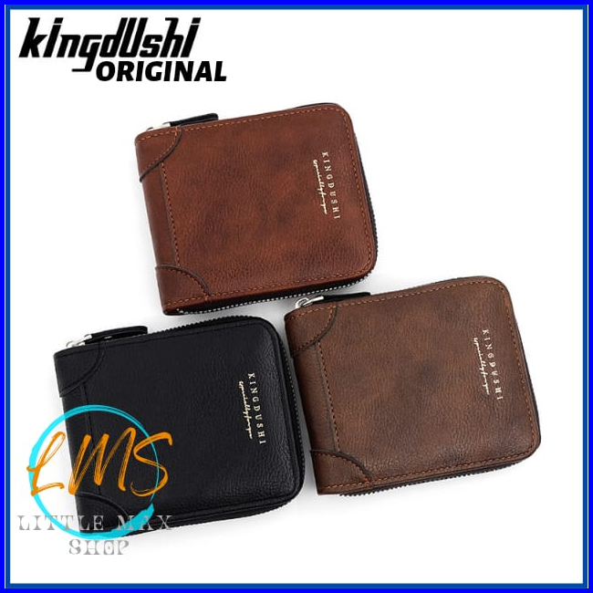 Lms Dompet Pria Ritsleting Kulit Pu Original Kingdushi Branded