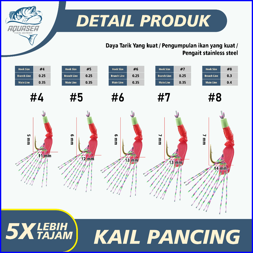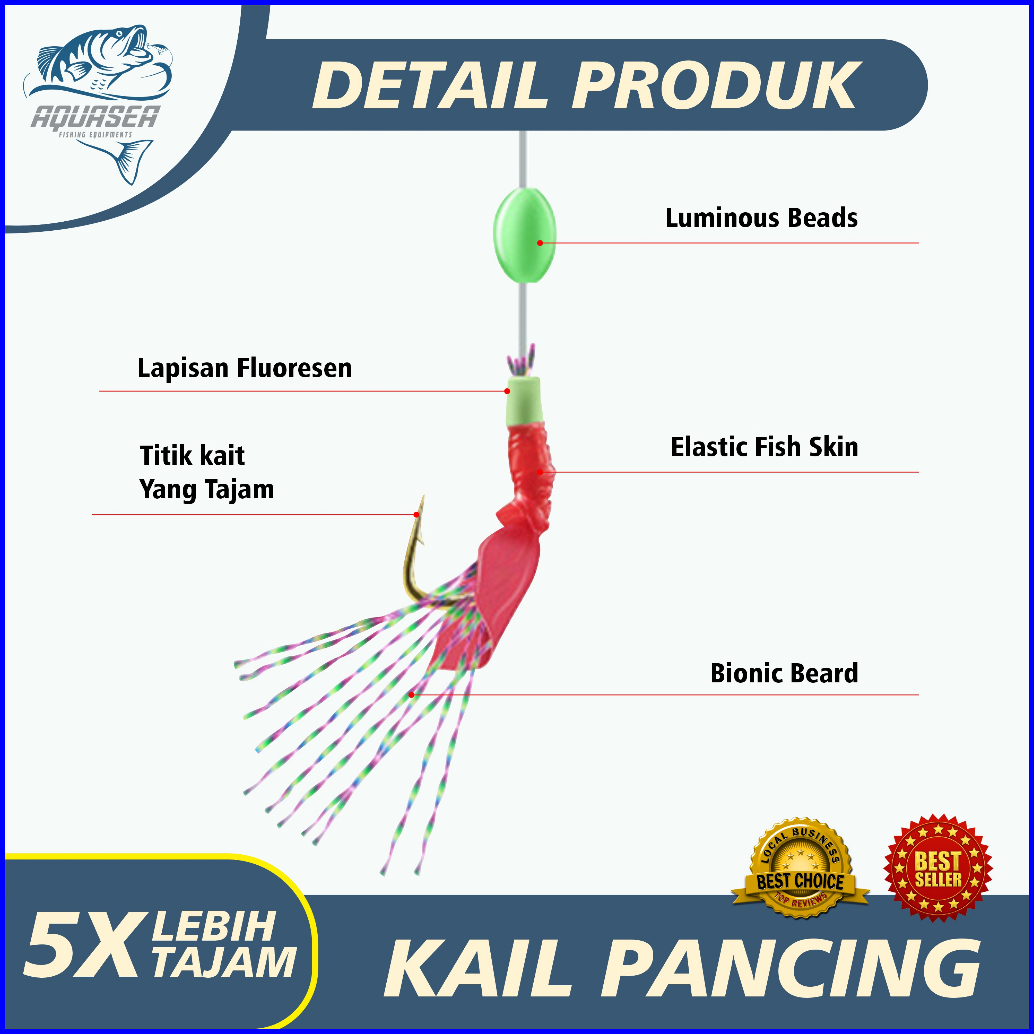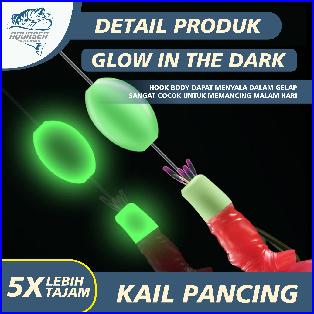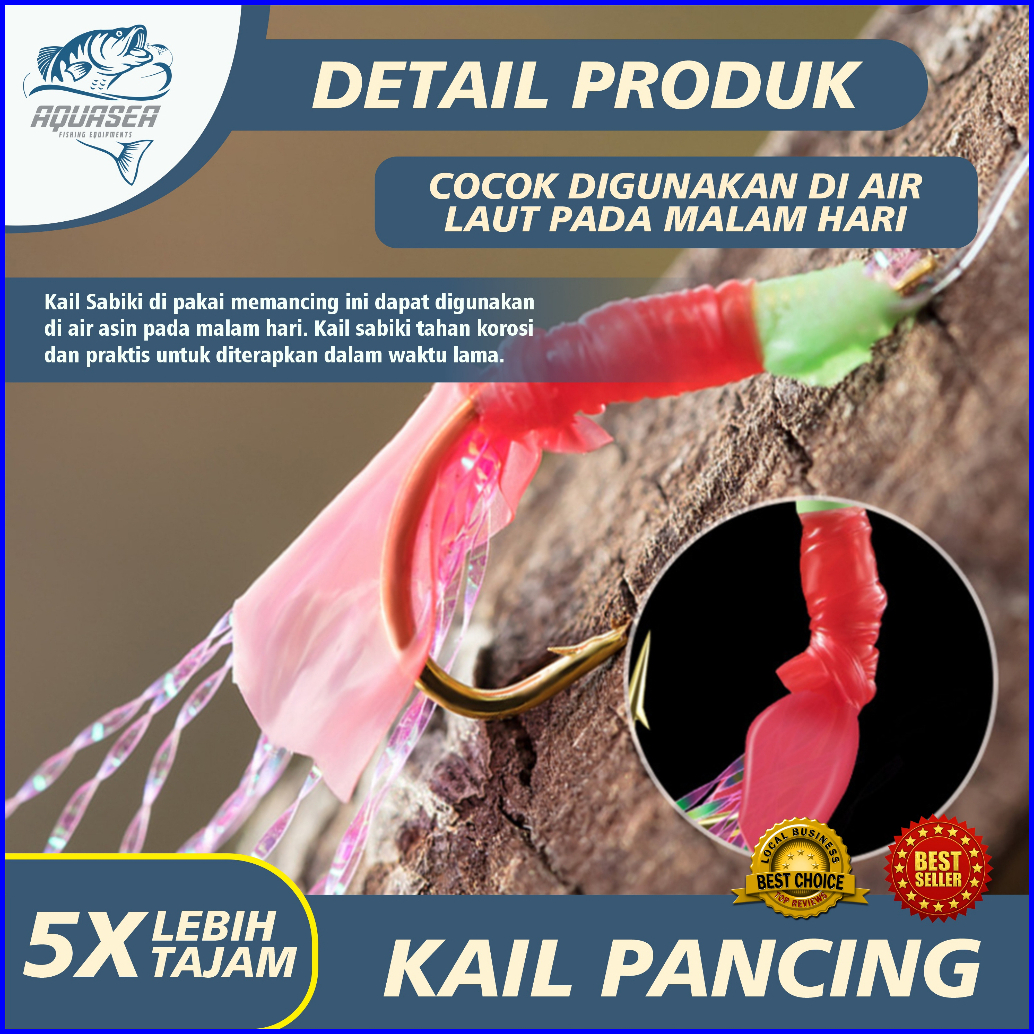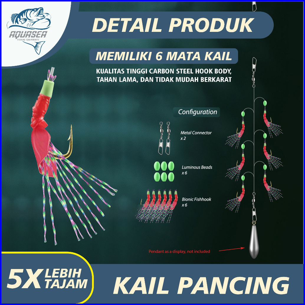 Aquasea - 6 In 1 Kail Umpan Pancing Sabiki Kotrekan Dengan Kilap Bercahaya Kotrekan Karet Shihang