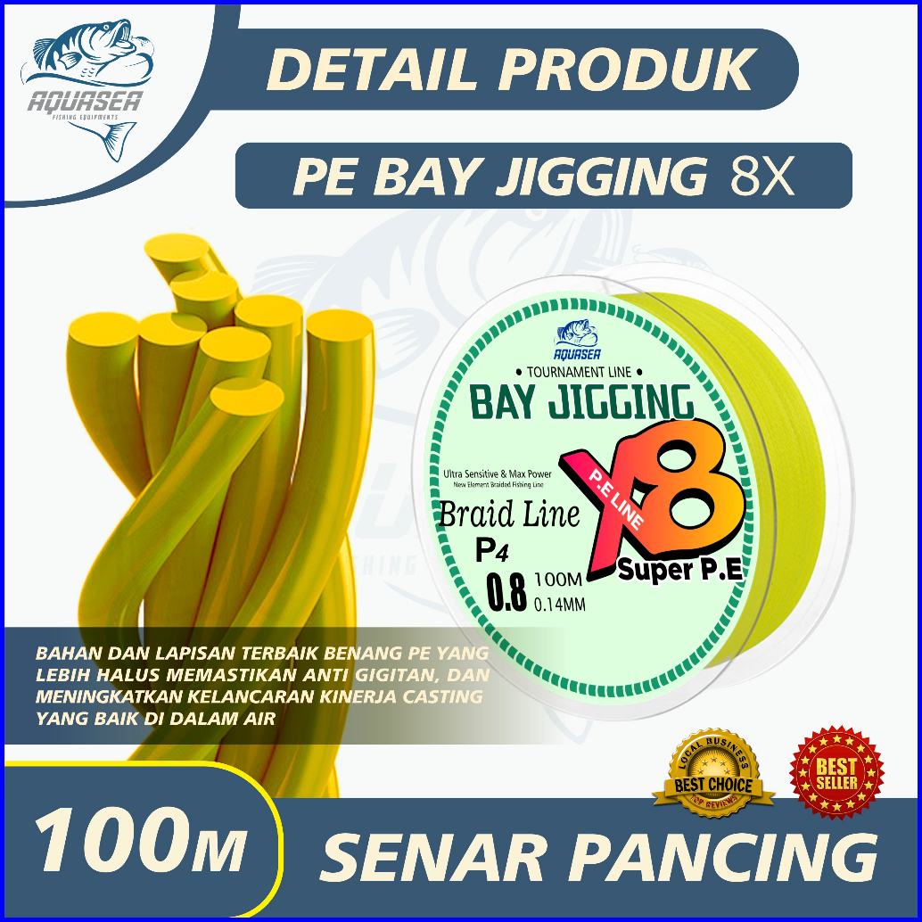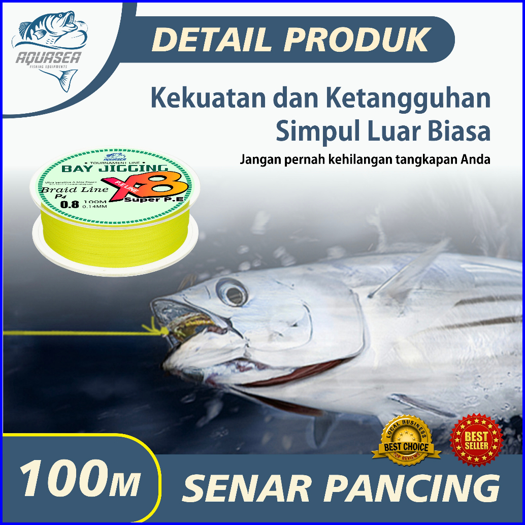 Aquasea - Senar Pancing Pe Kuning 100m Pe 6.80kg-50.5kg Sangat Kuat Pancing Pe X8 Bay Jigging