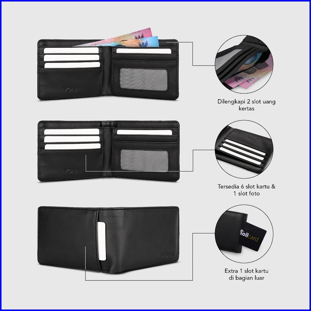 Vona Jet Wallet - Dompet Pria Lipat Kulit Pu