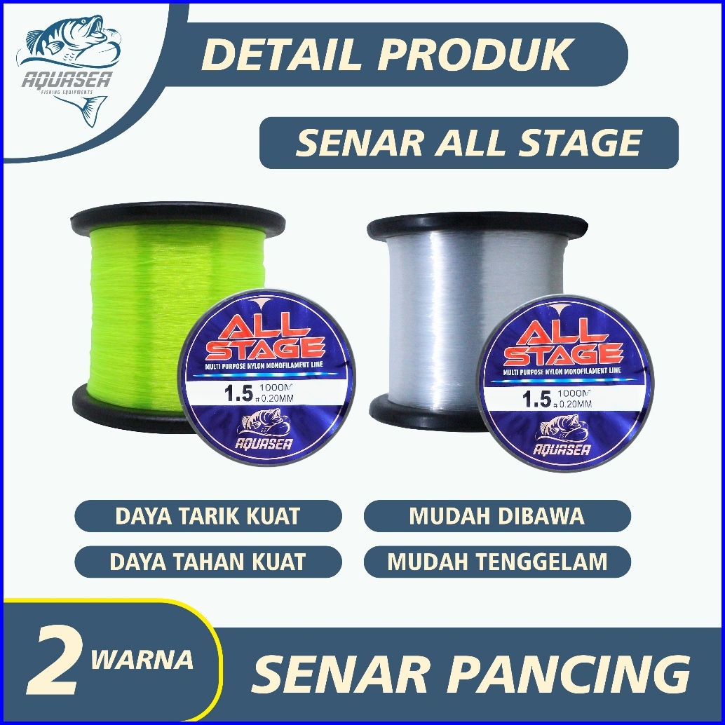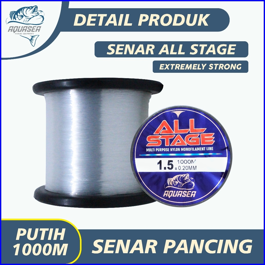 Aquasea Tali Pancing 1000m Warna Putih Dan Hijau Nilon Fishing Line Original Senar Pancing All Stage