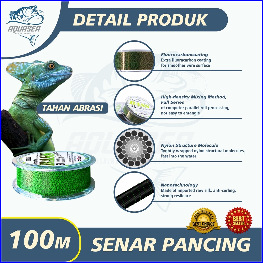 Aquasea Tali Pancing Bass Fluorocarbon 100m Warna Hijau Tua Senar Pancing Fishing Line Sangat Kuat