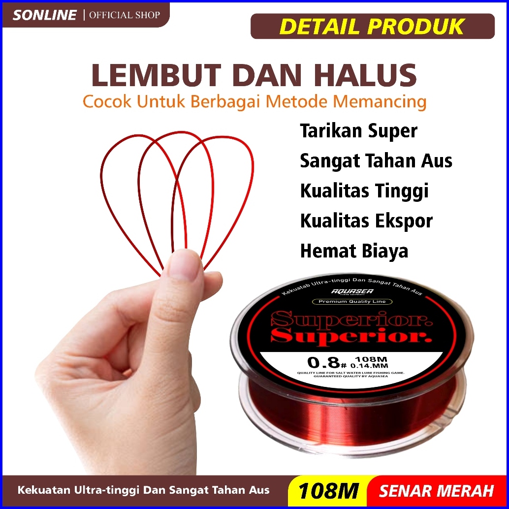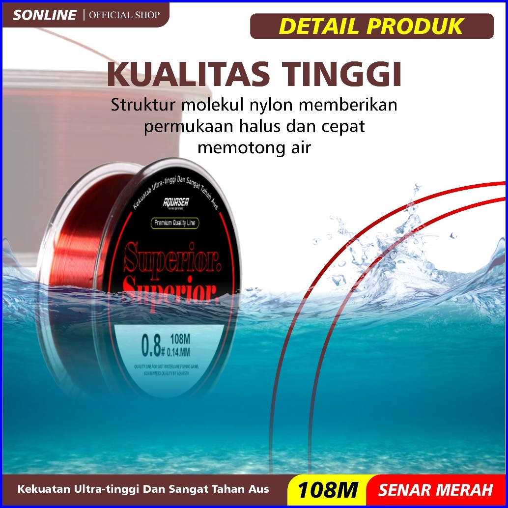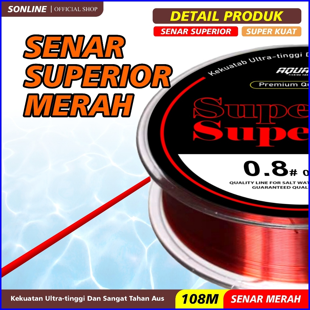 Sonline - Tali Pancing 108meter Warna Merah Senar Pancing Bahan Nilon Super Tahan Aus Senar Superior