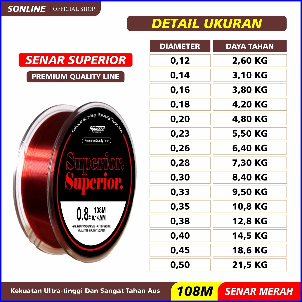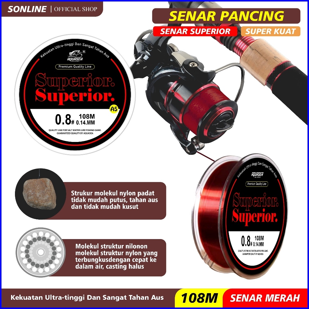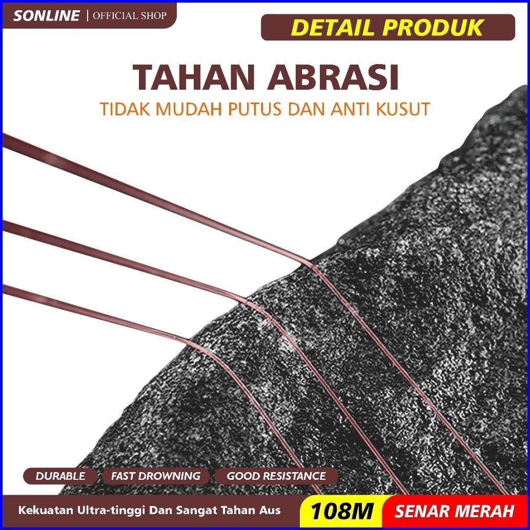 Sonline - Tali Pancing 108meter Warna Merah Senar Pancing Bahan Nilon Super Tahan Aus Senar Superior