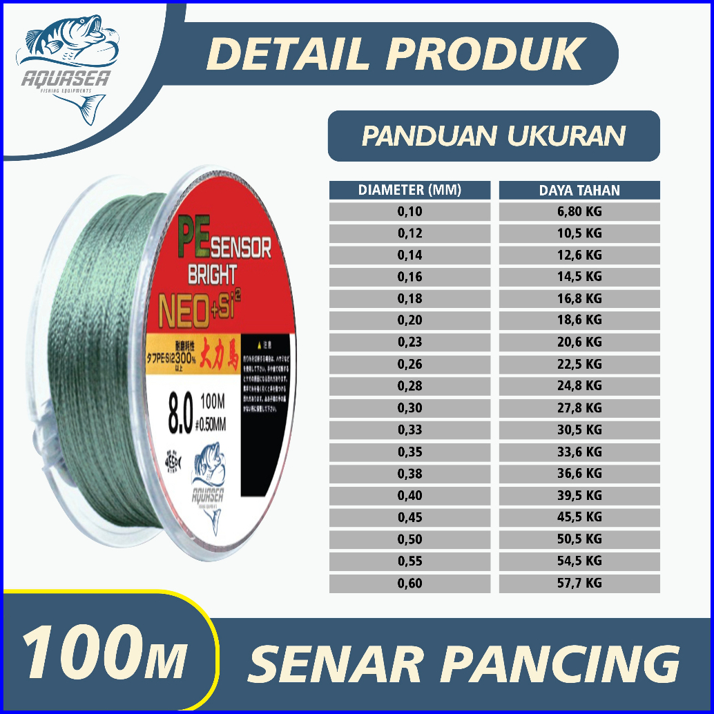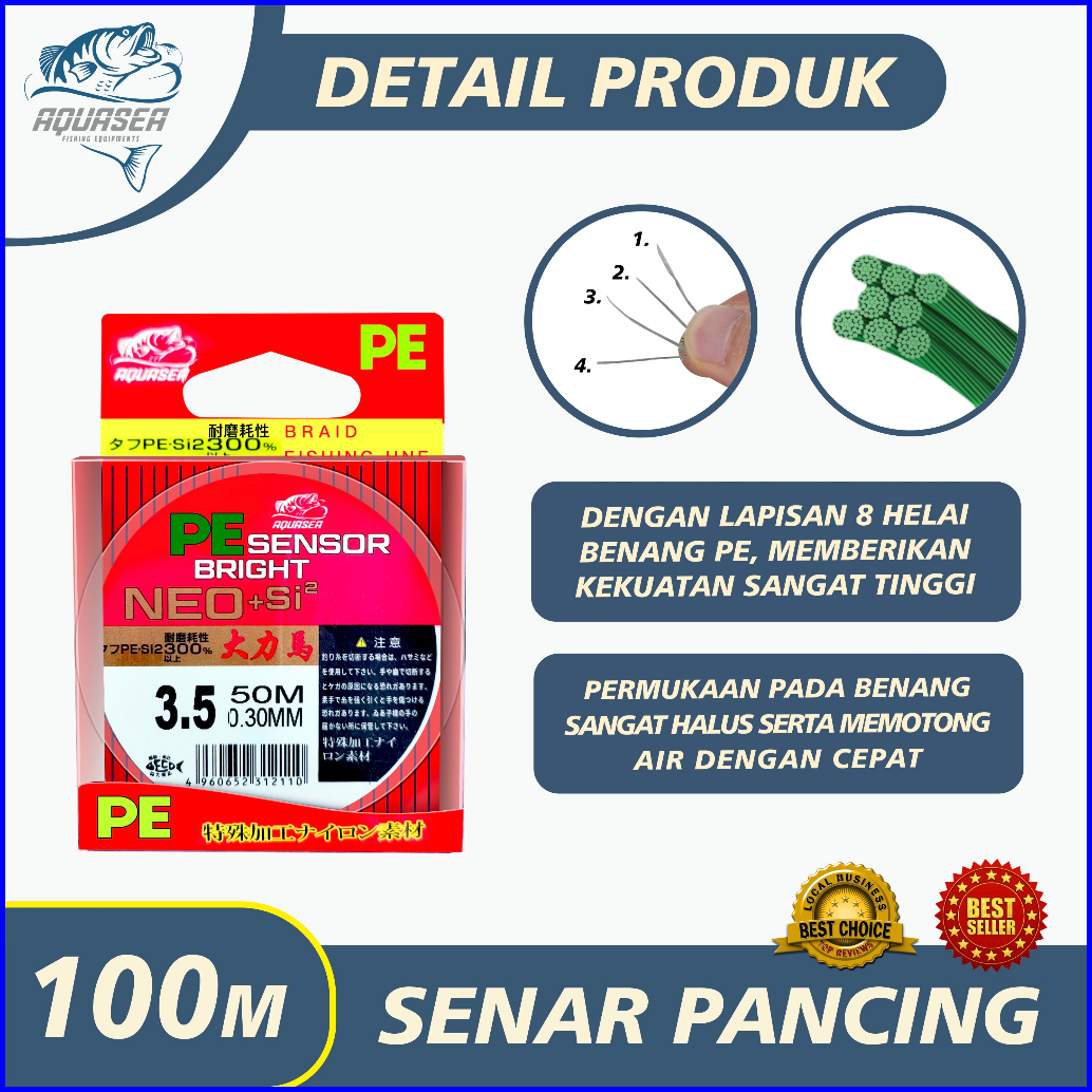 Aquasea - Tali Pancing 100m Senar Pancing Pe Sensor Bright Hijau Sensor Neo Si2 Jepang Senar Kuat